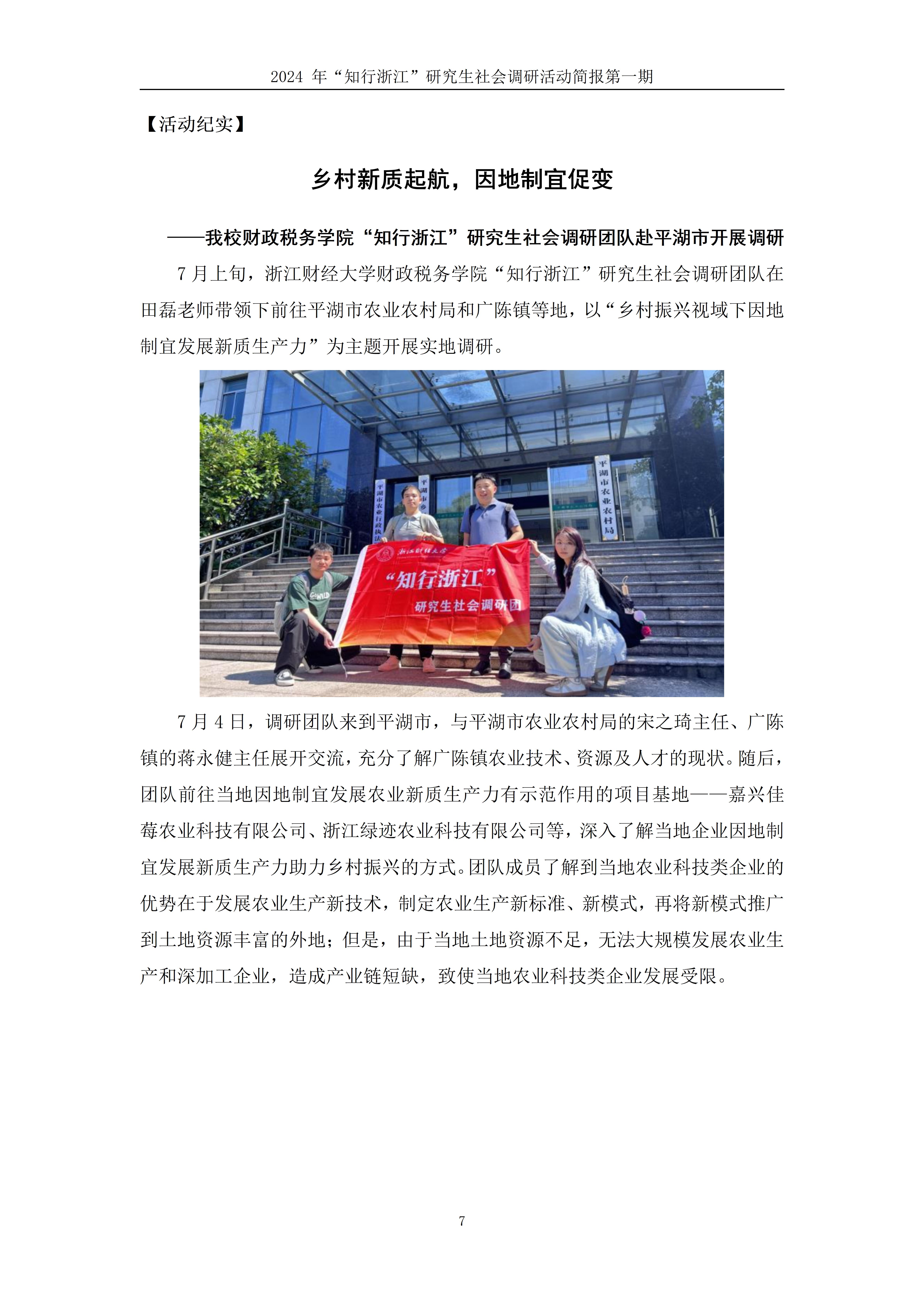 2024年“知行浙江”研究生社会调研活动简报第1期