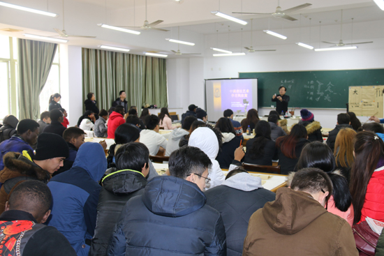 12月8日,黄建新教授为国际学院留学生作了一场精彩的中国书法艺术学习与鉴赏讲座,受到了留学生的热烈欢迎。