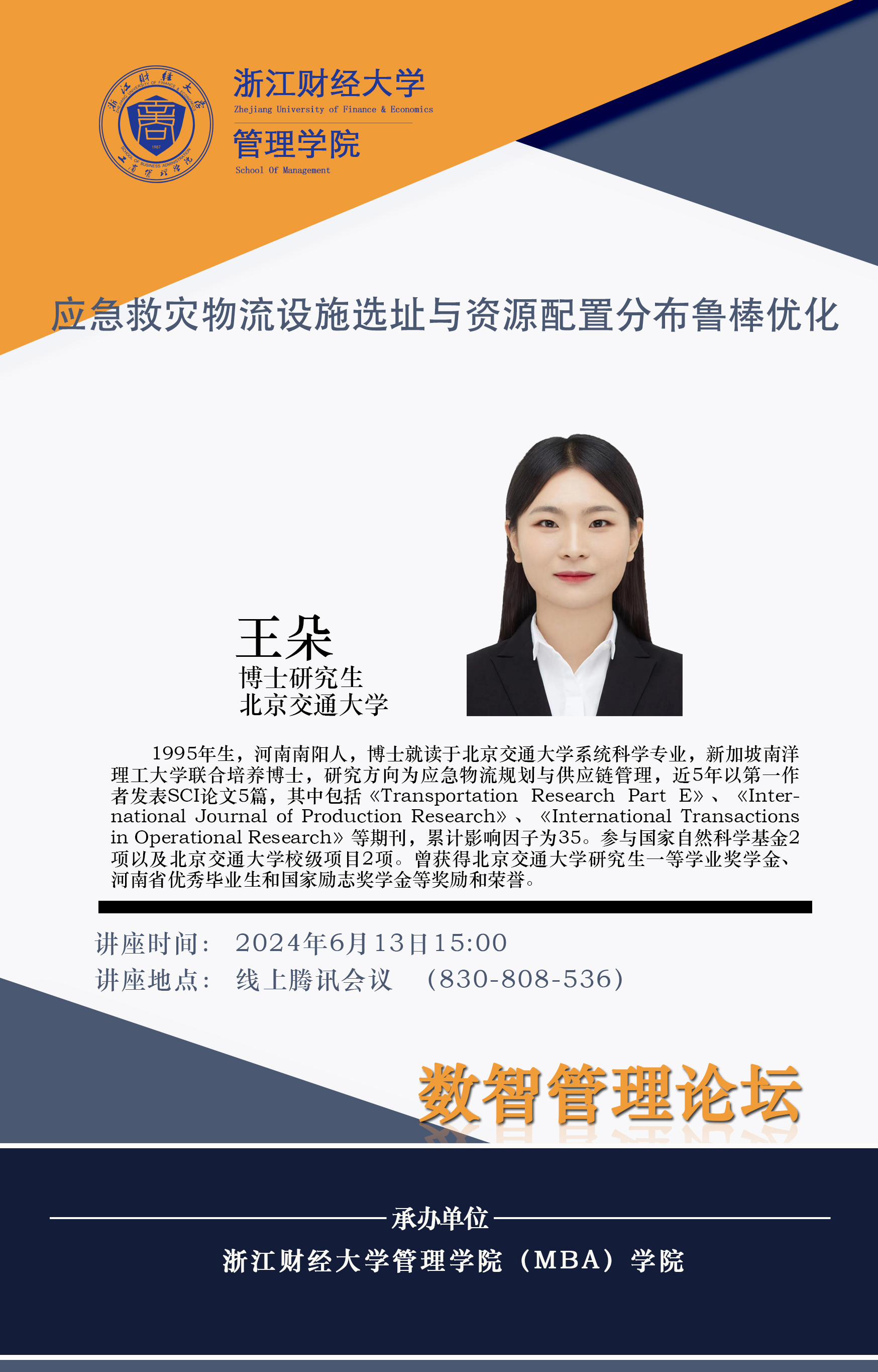 【管理学院公开讲座】王朵:应急救灾物流设施选址与资源配置分布鲁棒优化