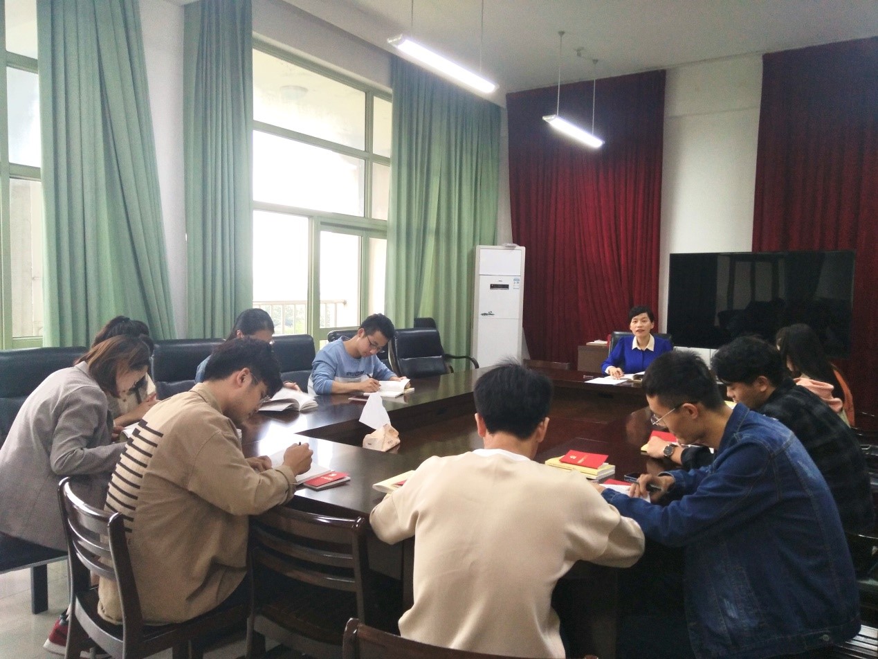 10日,于9号楼506会议室,在陈小芳老师带领下,开展以“‘不忘初心、牢记使命’宗旨意识担当作为”专题学习会,转述ued体育 党委书记李金昌、纪委书记陈金方在“‘不忘初心、牢记使命’宗旨意识担当作为”专题学习会上的讲话内容,集中学习上级文件精神。