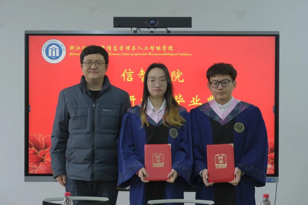 会上,隆清琦副院长和张帅院长分别为2023届ued体育 优秀毕业生、2023届浙江省优秀毕业生颁发荣誉证书,徐奇伟书记为2023届研究生校友联络员颁发聘书。