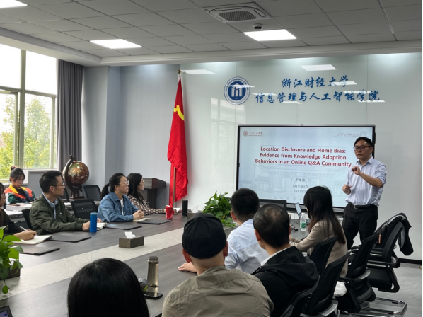 10月27日下午,上海交通大学安泰经济与管理学院罗继锋教授应邀来我院做学术讲座。罗教授分享的主题为“Location Disclosure and Home Bias: Evidence from Knowledge Adoption Behaviors in an Online Q&A Community”。学院副院长隆清琦教授、学院骨干教师、研究生等三十人参加了讲座。讲座由信管系教师王盼盼主持。