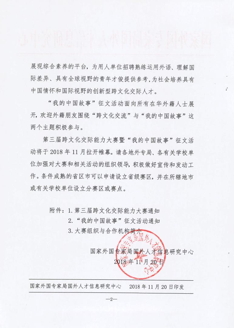 上一条:2018年度台湾、港澳及华侨学生奖学金评选结果公示下一条:关于举办“外国专家看中国·首届全国摄影大赛”的通知