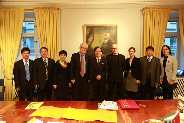 12月14日,副校长黄建新率我校代表团一行6人,在考察北欧高校期间应邀访问了诺贝尔基金会总部,受到基金会主席Lars Heikensten和首席法务官Erika Lanner的热情接待,双方进行了友好交流。