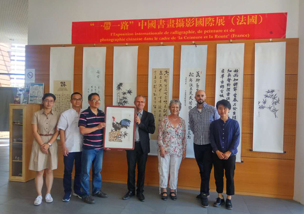 日前,由法国栋皮埃尔市和我校共同主办的“中国生态文化周暨‘一带一路’中国书画摄影国际展”在法国隆重开幕。栋皮埃尔市市长菲利普·加博里欧、副市长莫妮卡·雷诺、拉罗什市文化局副局长弗朗索瓦兹·伯尼尔等出席展览开幕式。