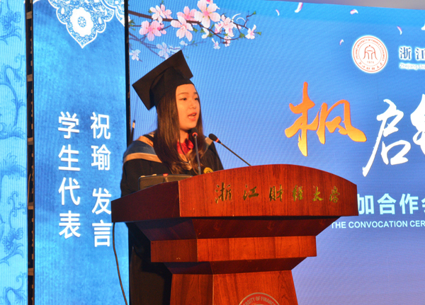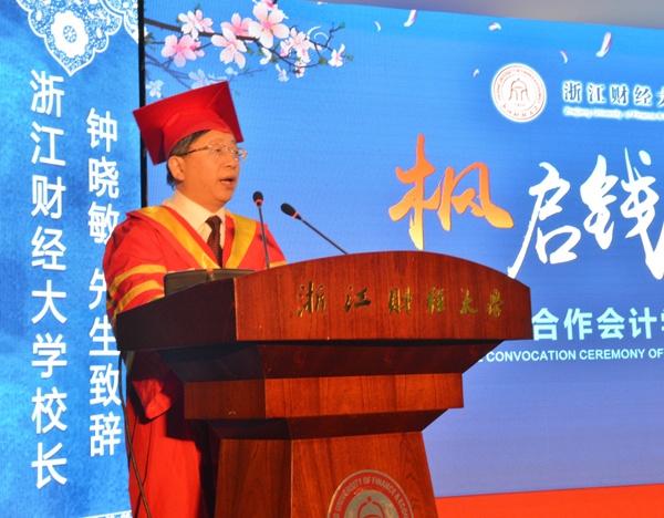 6月11日下午,我校中加合作会计学项目首届本科生毕业典礼在下沙校区隆重举行。钟晓敏、黄建新、邵毅平等领导与加拿大劳伦森大学校长Dominic Giroux先生、CPA Canada中国区执行理事Barbara Ko女士、劳伦森大学管理学院院长Stephen Havlovic先生、校友办主任Rachel Chisholm女士、EAP项目主任Tamara Mcloughlin女士,管理学院国际项目主任Hugo Chen先生、加拿大政府驻上海总领事馆商务(教育)专员赵佳女士,会计学院师生代表及毕业生家长近500人参加了毕业典礼。
