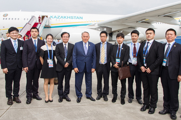 纳扎尔巴耶夫总统(中)与我校代表合影