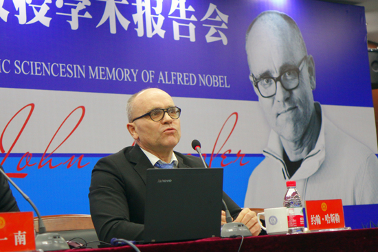 哈斯勒教授对世界经济的现状及发展趋势作出了判断。他认为,全球经济衰退没有完全结束,但也不会导致全球萧条,美国、欧盟和中国的经济形势虽面临许多挑战,但未来前景仍然乐观。他还介绍了诺贝尔经济学奖的评奖标准和三大获奖支撑条件。
