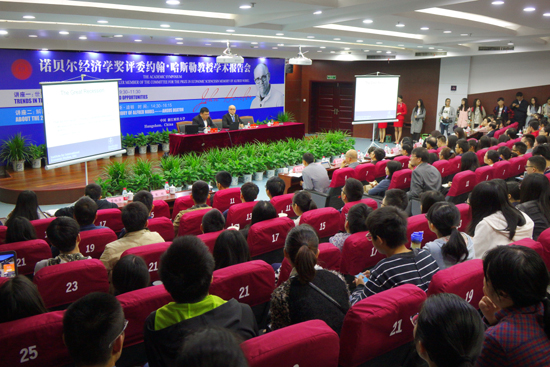 10月30日,诺贝尔经济学奖评委、瑞典斯德哥尔摩大学经济学教授约翰•哈斯勒应邀来我校作了题为《世界经济趋势——挑战和机遇》(Trends in the World Economy---Challenges and Opportunities) 和《解读2015年诺贝尔经济学奖》(About the 2015 Prize in Economic Sciences in Memory of Alfred Nobel——Angus Deaton) 的两场学术讲座。校领导、相关职能部门、各学院负责人及教师代表、学生代表聆听了讲座。讲座分别由王俊豪教授、黄建新教授主持。