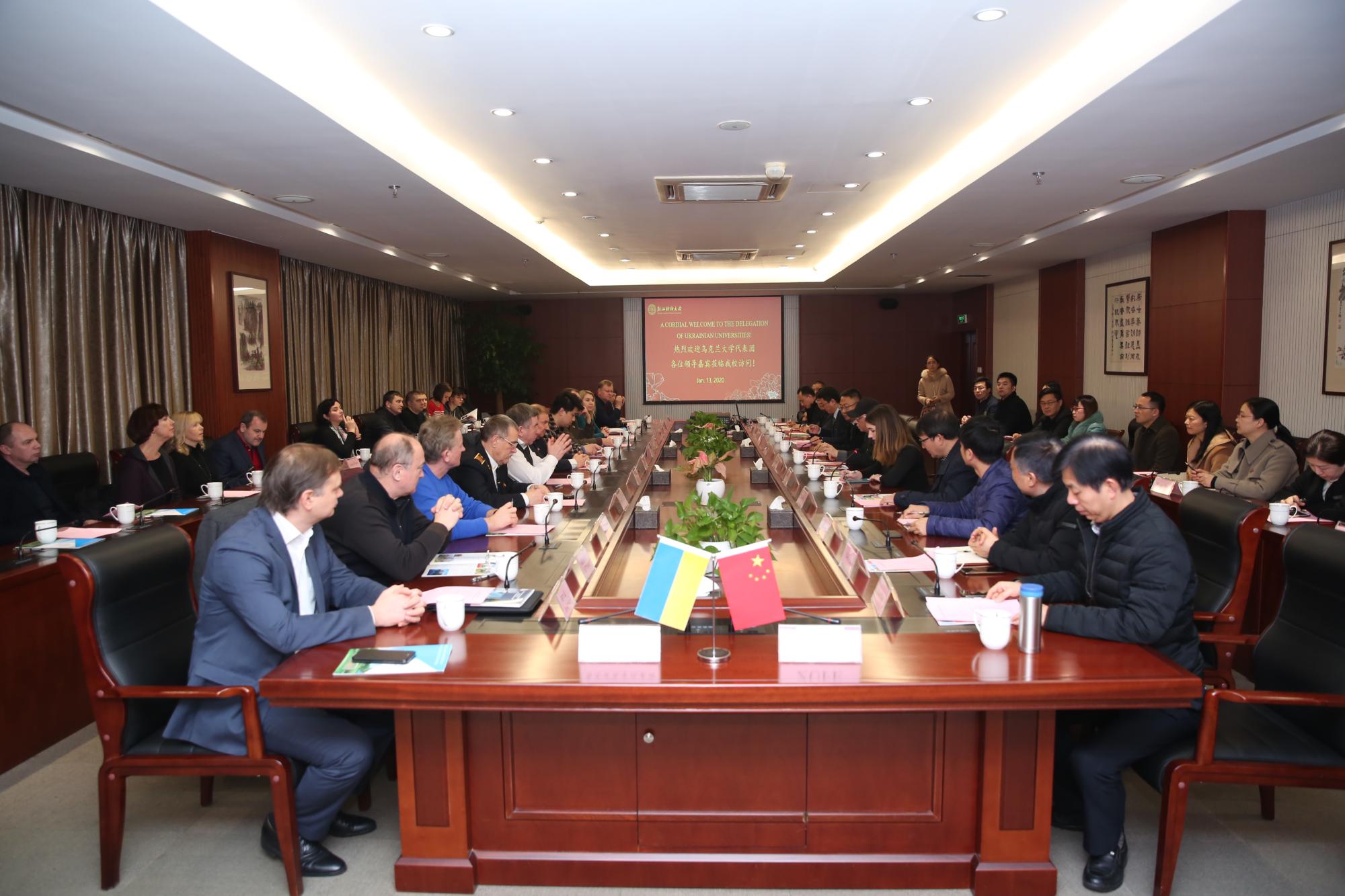 1月13日,以乌克兰航天航空大学校长尼古拉·耐其坡鲁克先生为团长的乌克兰大学代表团来校访问,校长钟晓敏、副校长李占荣出席欢迎仪式,各二级学院负责人、体育部、国际学院和国际交流合作处负责人参加了会见。