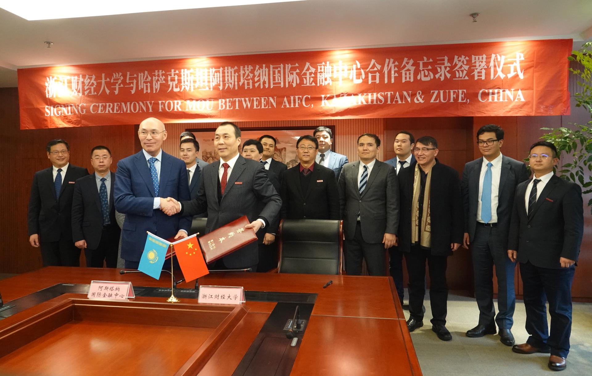 李金昌对客人的到来表示热烈欢迎。他首先向客人着重介绍了我校的办学历史、招生情况以及学校近年来取得的国际化办学成果。他表示,哈萨克斯坦是中国的友好邻邦,是共建“一带一路”、开展国际产能合作的重要合作伙伴。一直以来,我校积极参与中哈之间的交流合作。今年10月,我校成立了国内首家哈萨克斯坦经济社会研究中心。他相信,与阿斯塔纳国际金融中心签署合作备忘录,必将促进我校哈萨克斯坦经济社会研究中心的发展,深化双方在国际金融、人才培养和文化交流等领域的合作,为中哈友谊做出新的更大的贡献。