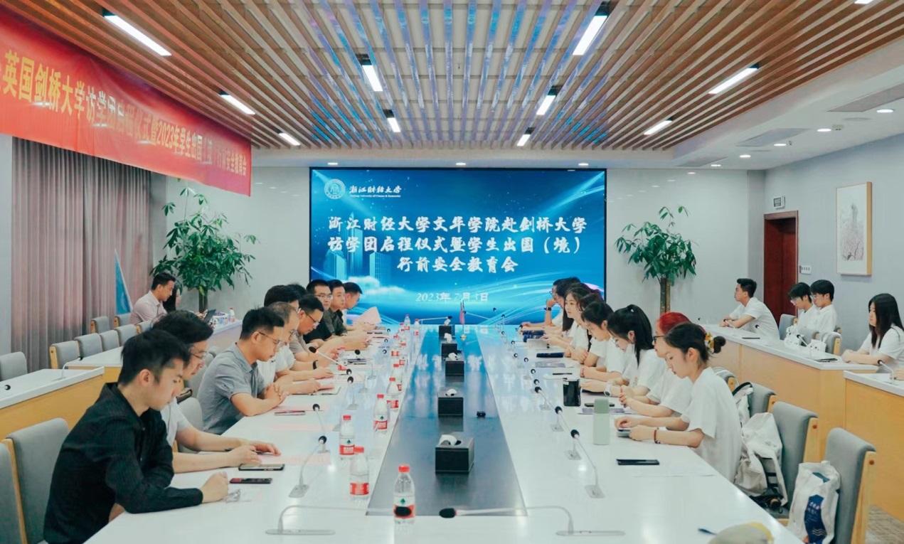 7月3日,文华学院赴英国剑桥大学访学启程仪式暨2023年学生出国(境)行前安全教育会在下沙校区举行。校党委委员、副校长董进才,相关职能部门和创新班各举办学院负责人等出席会议。