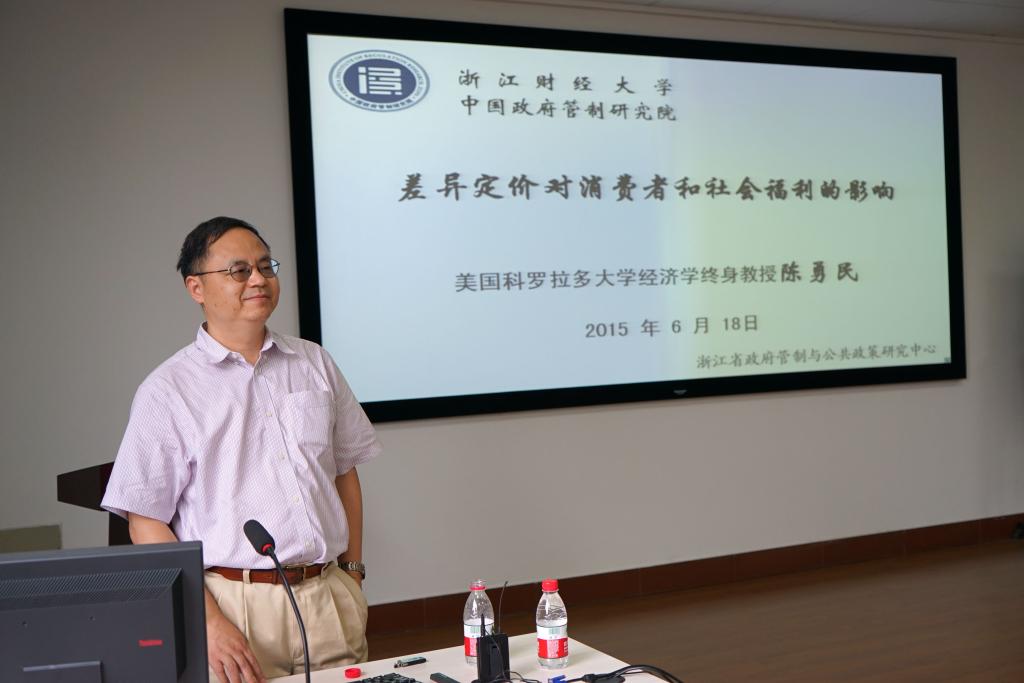 6月18日下午,产业组织理论领域的国际顶尖学者、美国科罗拉多大学终身教授陈勇民在中国政府管制研究院为我校师生做了题为“差异定价对消费者和社会福利的影响”的学术报告。报告由研究院常务副院长唐要家教授主持。