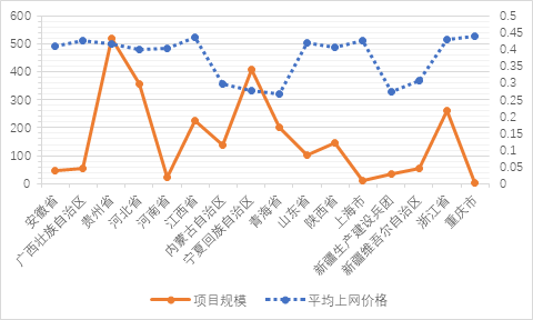 自2019年光伏新政下发以来,各地已经陆续公布了竞价项目申报时间表。新政规定,除了户用和扶贫项目外,2019年新建分布式和普通地面电站项目均实行竞价上网,国家能源局根据修正后的申报上网电价报价由低到高排序遴选纳入补贴范围的项目。目前,根据发改委公布的申报名单,截至2020年8月,共计申报4340竞价上网项目。对比2019年和2020年的价格数据,可以看到2019年光伏上网电价最高为0.521元/度、最低为0.313元/度,2020年最高电价为0.441元/度、最低电价为0.266元/度,平均下降约0.1元/度。从新增光伏项目规模看,2019年前3名分别为广西、山西和浙江,2020年河北和宁夏光伏新增项目激增,一度超越浙江省,分居第二、三位。
