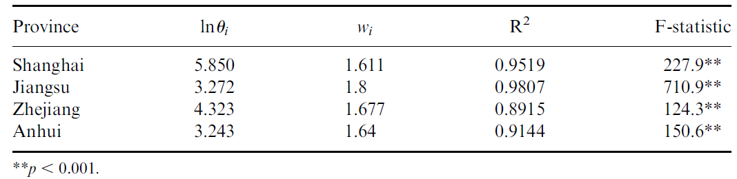 为待估参数。为评估四省市减排成本函数,首先将该函数关系两边取对数得到关系式