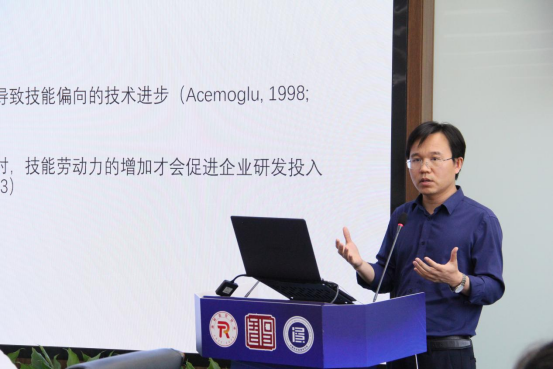 张川川研究员作“教育、贸易开放与内生技术进步”主旨报告。他指出,技能劳动力相对供给增加(人力资本投资)以及出口需求(对外开放)扩张促进了内生技术进步。