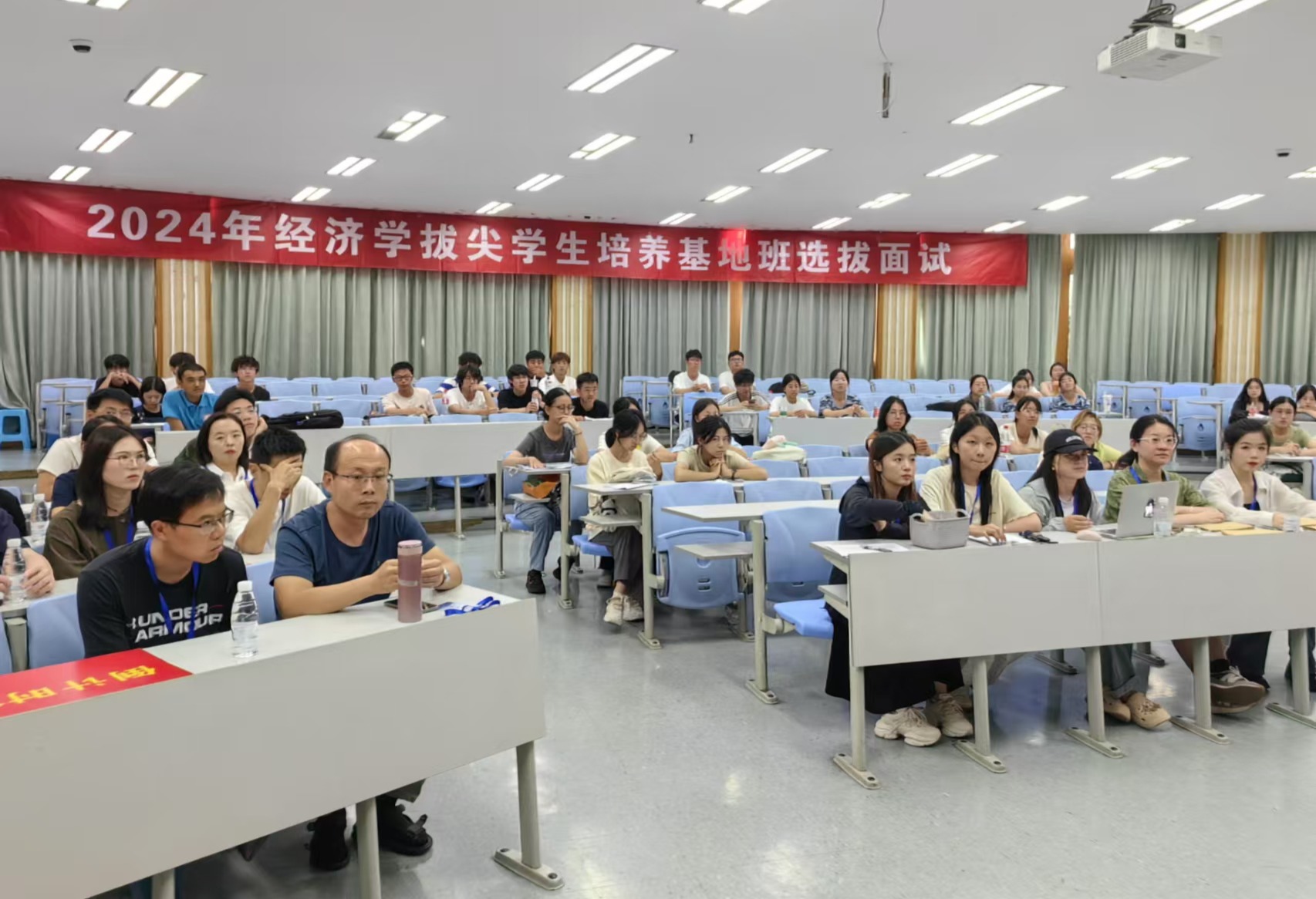 本次经济学拔尖学生培养基地班新生选拔有效报名人数达136人,依据入围面试规则,经筛选、审核并确定,共有60名学生入围面试环节。选拔面试工作小组结合经济学拔尖学生培养基地班的定位,针对学习能力、创新能力、思辨能力等多维度进行综合评分,最终预录取30名进入本次经济学拔尖学生培养基地班。