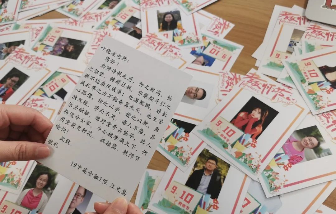 9月10日上午,金融学院的同学们为老师们送上了一份特别的礼物——同学们自己设计的祝福贺卡。