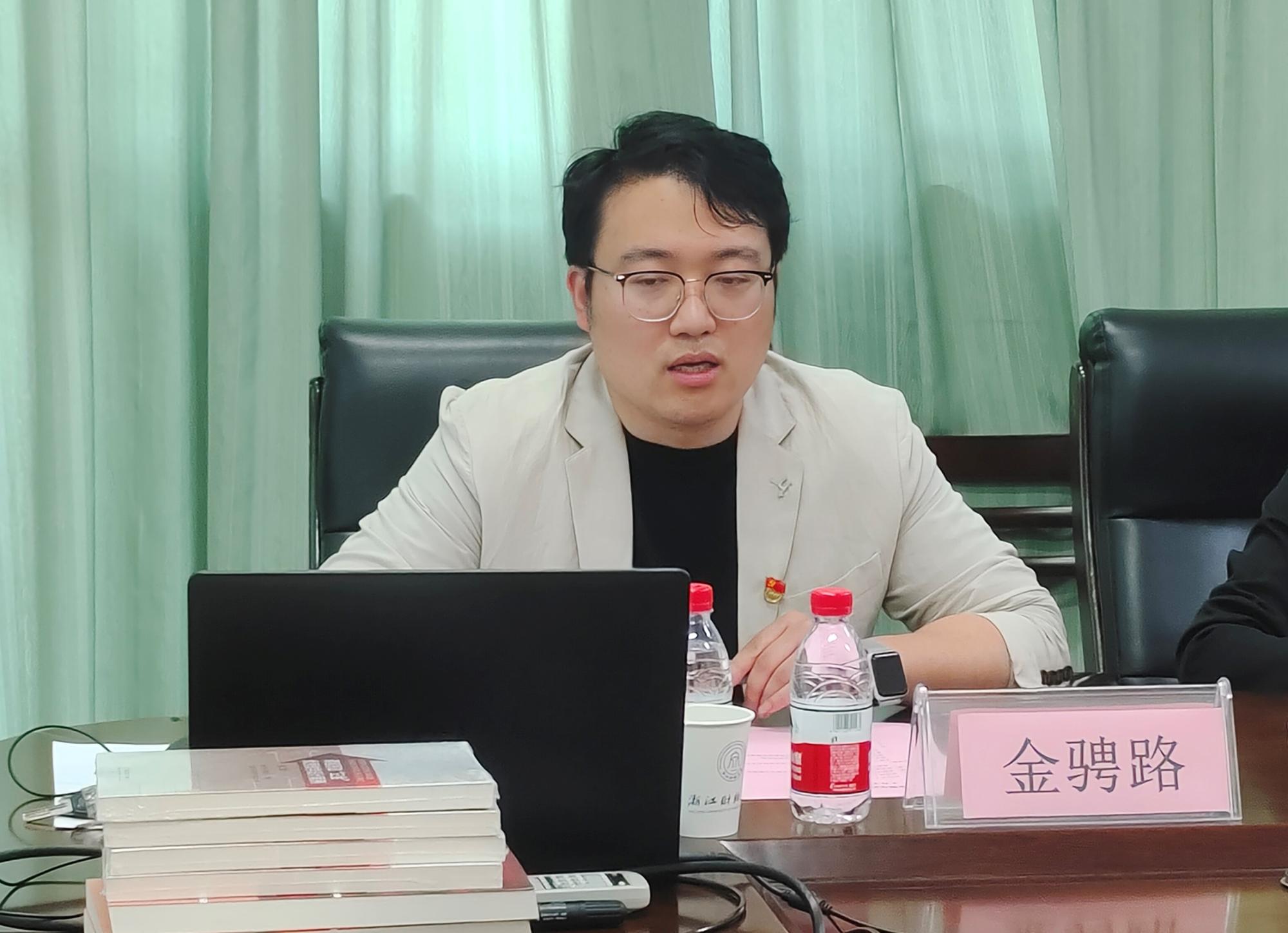 首先,教工第一党支部书记金骋路结合金融学专业建设向大家介绍了课程思政建设背景。他强调在金融学专业培养目标中,“良好的思想政治素质”应排在首位,课程思政建设的基础在课程、重点在思政、目标是立德树人,“我们要在教学的过程中,与学生做同行者,以多思维、多角度去进行思政教育。”