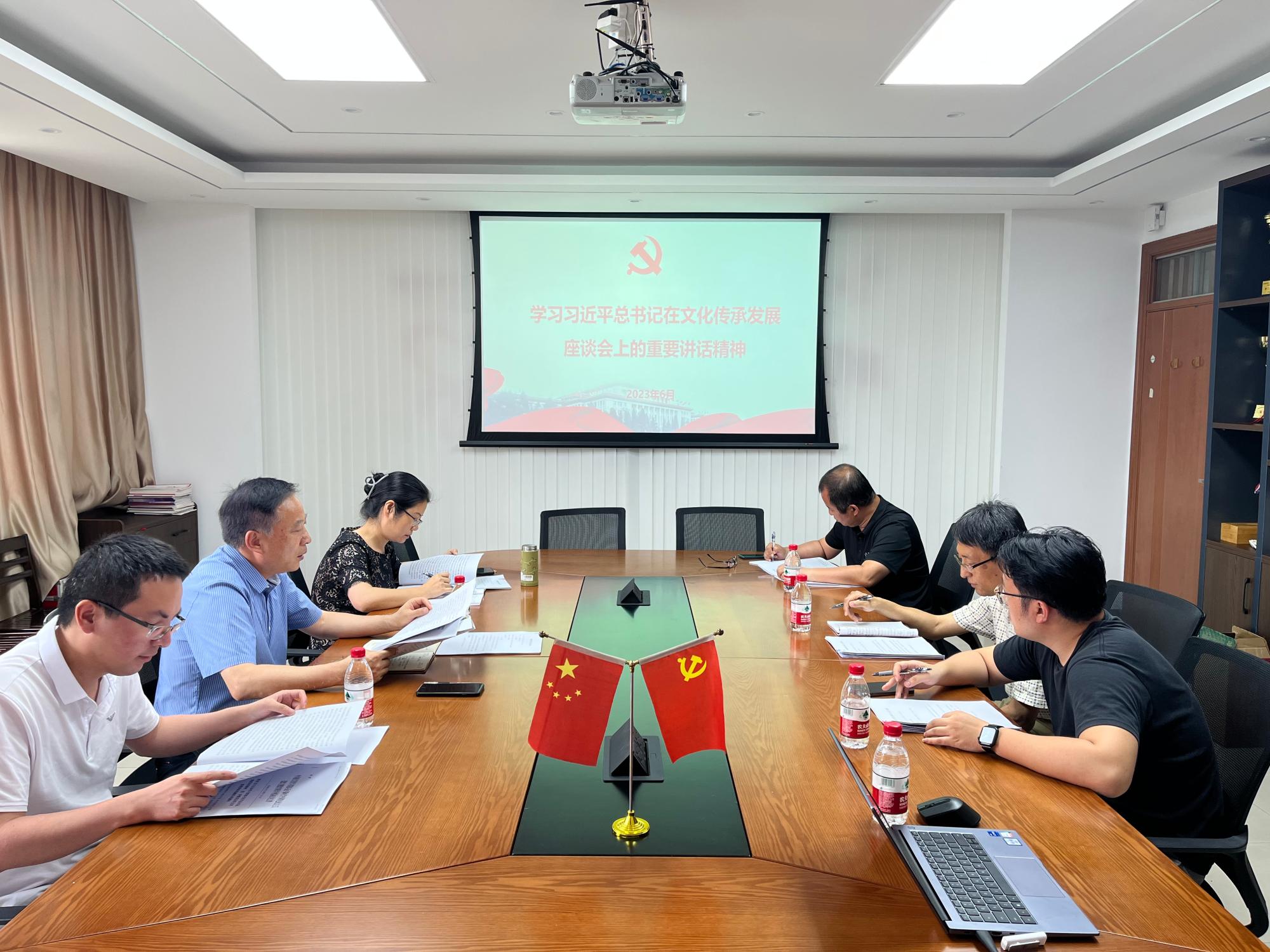 为扎实推动主题教育走深走实,牢牢把握“学思想”的要求,七一前夕,学院党委召开党委会“第一议题”学习习近平总书记在文化传承座谈会上的重要讲话精神,深刻感悟思想,积极推进工作。学院党委书记蔡国金领学习近平总书记在文化传承发展座谈会上的重要讲话精神,与会成员围绕学习主题积极进行交流和探讨,深刻把握精神实质,谋划做好学院各项工作。