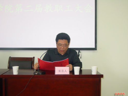 2006年5月15日,在雄壮嘹亮的国歌声中,金融学院第二次教职工大会在金融学院楼隆重召开。会议由金融学院党总支副书记陈伟主持,52名教职工参加此次大会。校工会副主席陈红路出席本次大会并表示了祝贺。