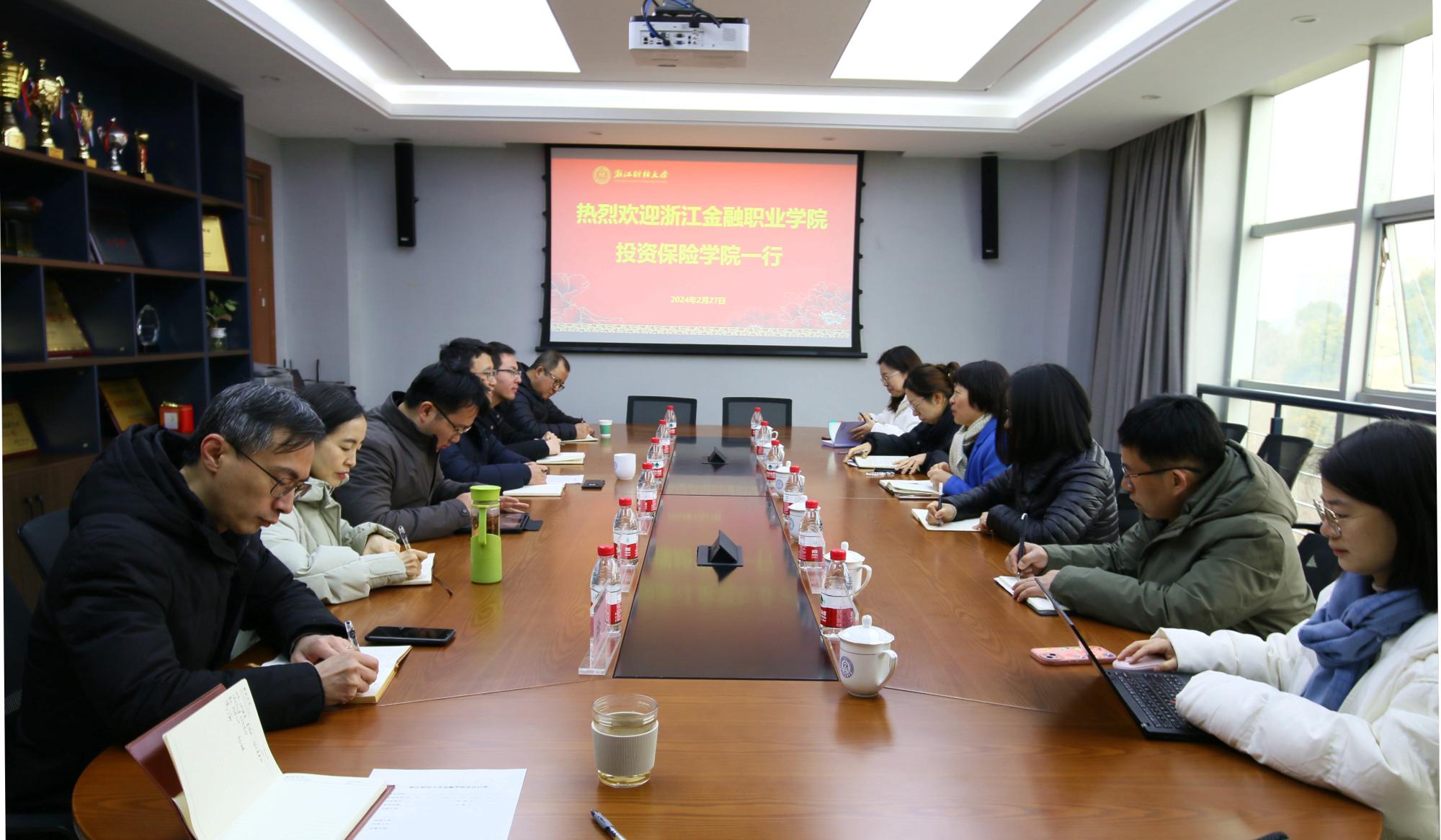 2024年2月27日上午,浙江金融职业学院投资保险学院党总支书记童春芽带队来访我院学习调研,院长王聪聪热情接待。副院长林祺、金骋路,专业负责人朴哲范、周海珍,竞赛办公室主任徐函陪同接待。