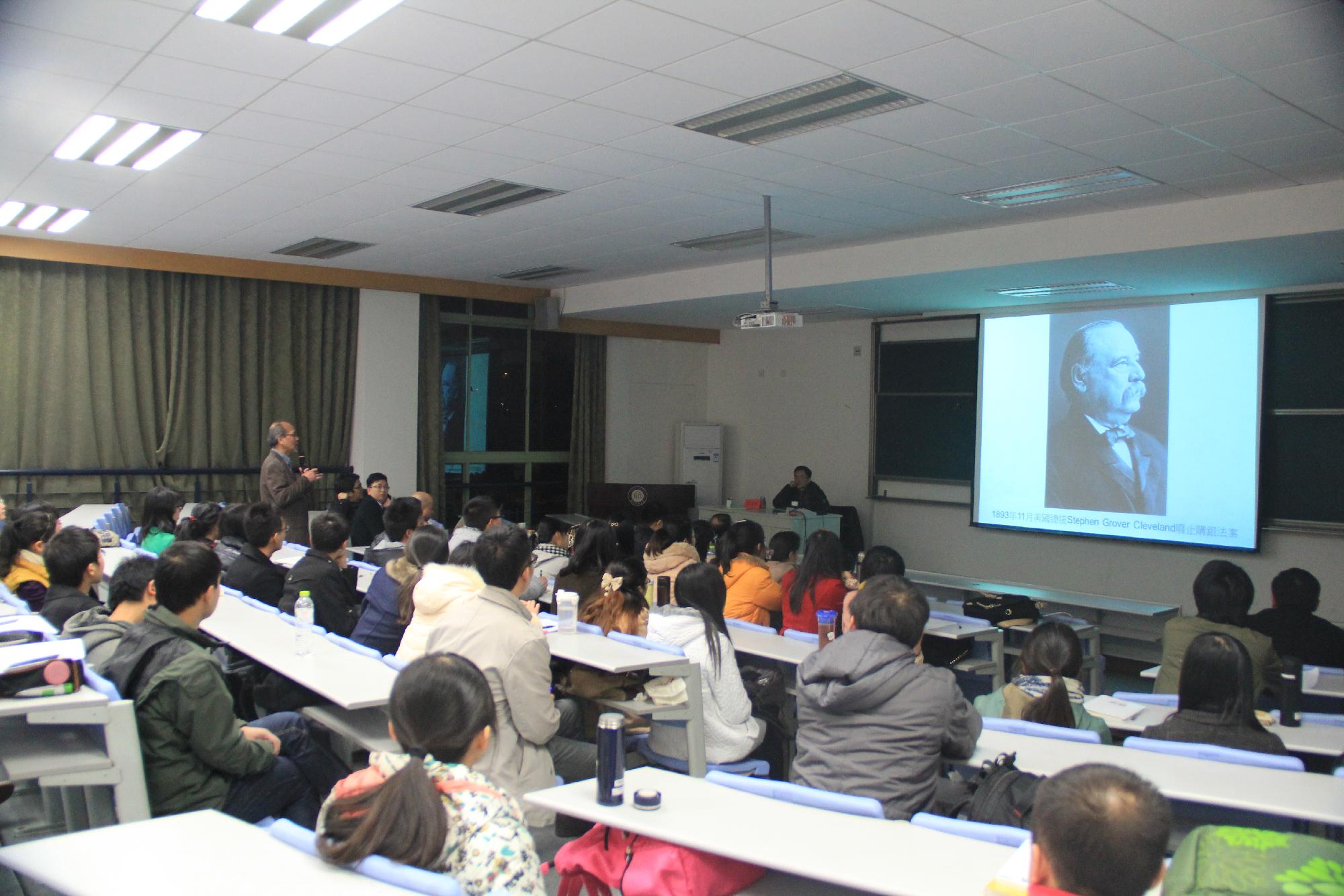讲座刚开始,赖建诚教授就一改学术讲座严肃沉闷的气氛,另辟蹊径抛出了“绿野仙踪不是童话故事”的观点,立刻吸引了全场观众的眼球。随后,赖教授又用自身的经历向同学们讲述了台湾几十年来经济的增长情况,与在场同学进行了亲密的交流,拉近了与同学们的距离。而他提出的的观点“《绿野仙踪》与中美经济有着密切的关系”更是激发了同学们强烈的好奇心。对此,赖教授用故事的角度、风趣的语言一一道来,在座同学恍然大悟,赞叹不已。而后,赖教授又详细地介绍了代表繁荣商业文明的金本位和同情劳苦工人、农民的金银复本位的各自优缺点。不仅如此,他还向同学们提出了“慈禧和美国购银法案究竟谁该对清朝灭亡负责”的问题,引得同学深思。讲座接近尾声的时候,赖教授和同学梦还就经济方面的问题进行了深入的交探讨,赖教授独具特色的讲授方式赢得了同学们的一致好评。