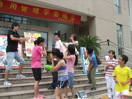 据悉,此次活动是金融学院名为“风雨六十年,龙腾盛世间”大型活动内容之一。另外还包括“情系中国”演讲比赛、“智在报国”趣味知识竞赛、“心寄以往,鸿影留声”的动画配音大赛和影片人物竞猜。尤其是在最后一项活动中,大学生们为《小猫钓鱼》、《喜羊羊与灰太狼》等国产动画片进行了现场配音,并根据《周恩来》等红色影片竞猜人物,收益颇丰。