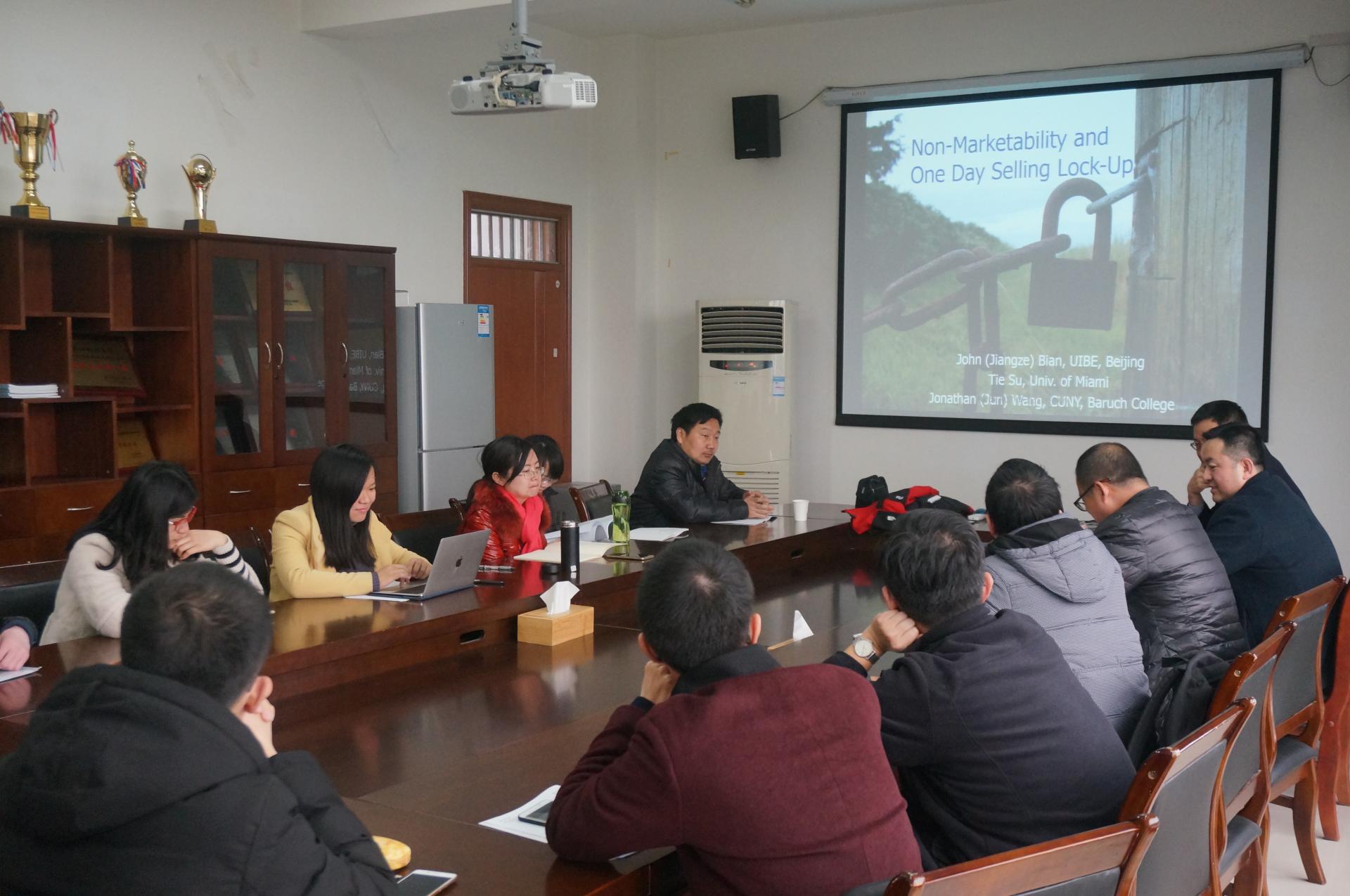 3月17号下午,美国迈阿密大学宿铁教授应邀在金融学院422室作了题为“Non-Marketability and One-Day Selling Lockup”的学术讲座。本次讲座由金融学院朴哲范教授主持,我院多名师生参加了此次讲座。