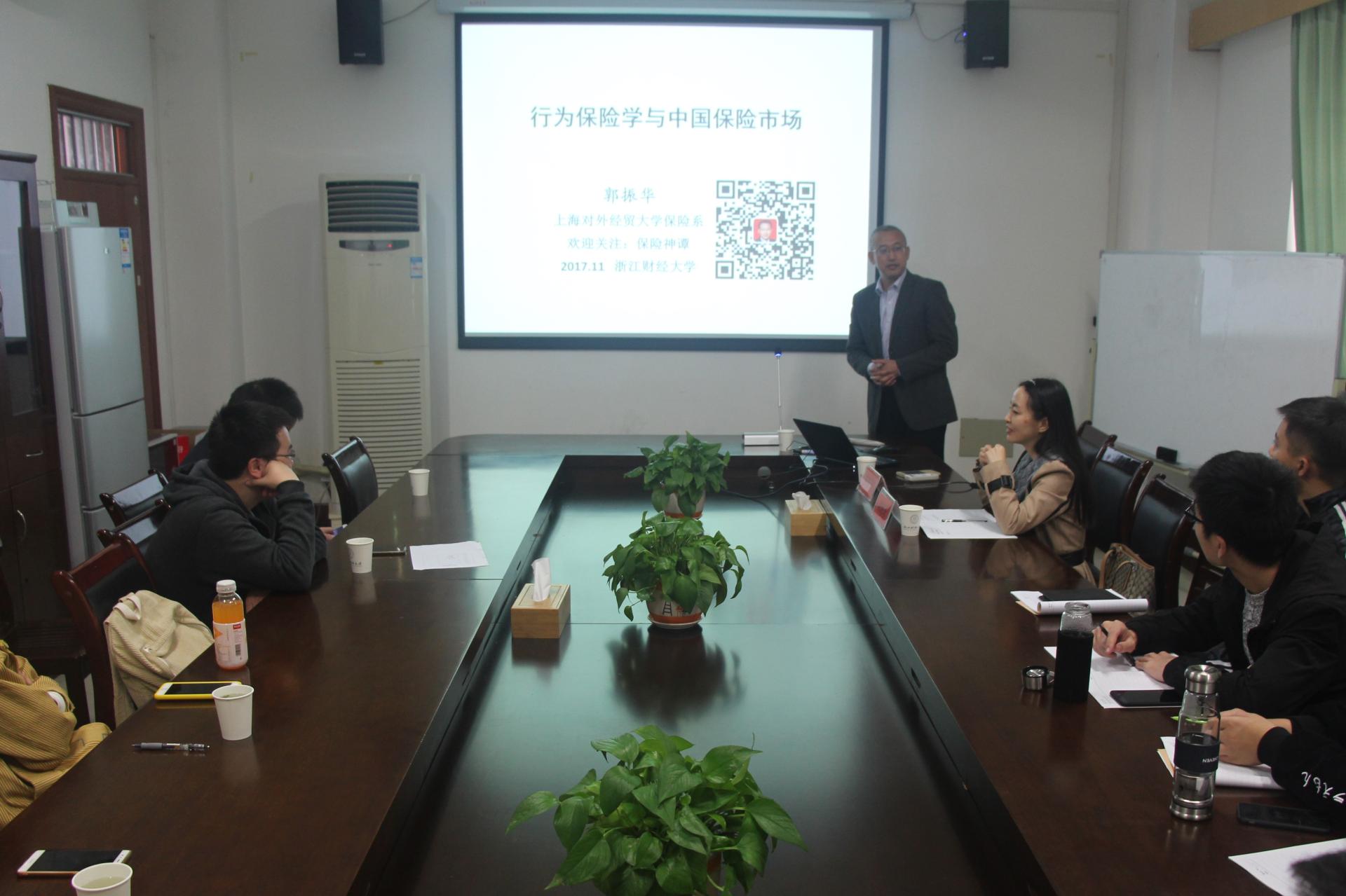 11月17日下午,上海经贸大学保险系郭振华教授在金融学院楼422作了题为“行为保险学与中国保险市场”的专题讲座。本次讲座由金融学院周海珍副教授主持,我院多位老师和研究生参加了此次讲座。