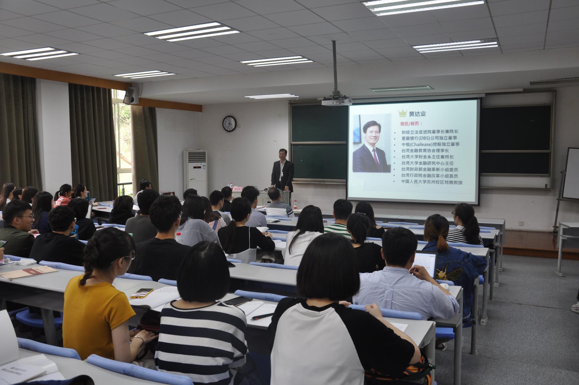 2019年4月23日下午15:30金融学院102教室,台湾大学黄达业教授应邀作了题为“金融监管、金融创新与大国金融人才的打造”的学术报告,金融学院多名老师及研究生出席了该次讲座。