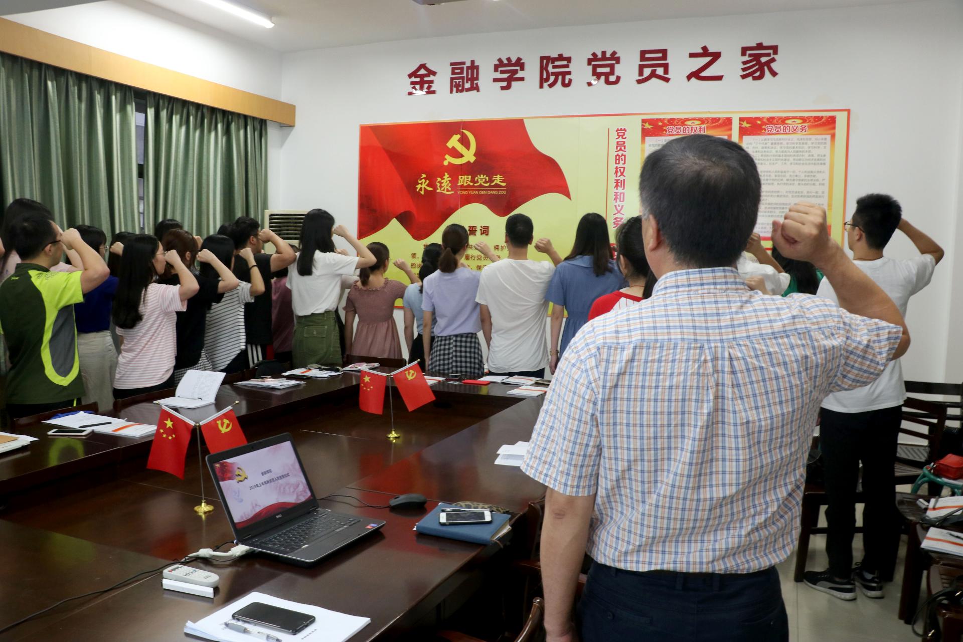 6月29日下午,金融学院党委书记上党课暨新党员入党宣誓活动在党员之家隆重举行。学院党委书记蔡国金、党委副书记叶秀、团委书记翟丽媛、辅导员王伟伟、聂亚平、沈耀杰以及全体新发展党员参加了本次活动。