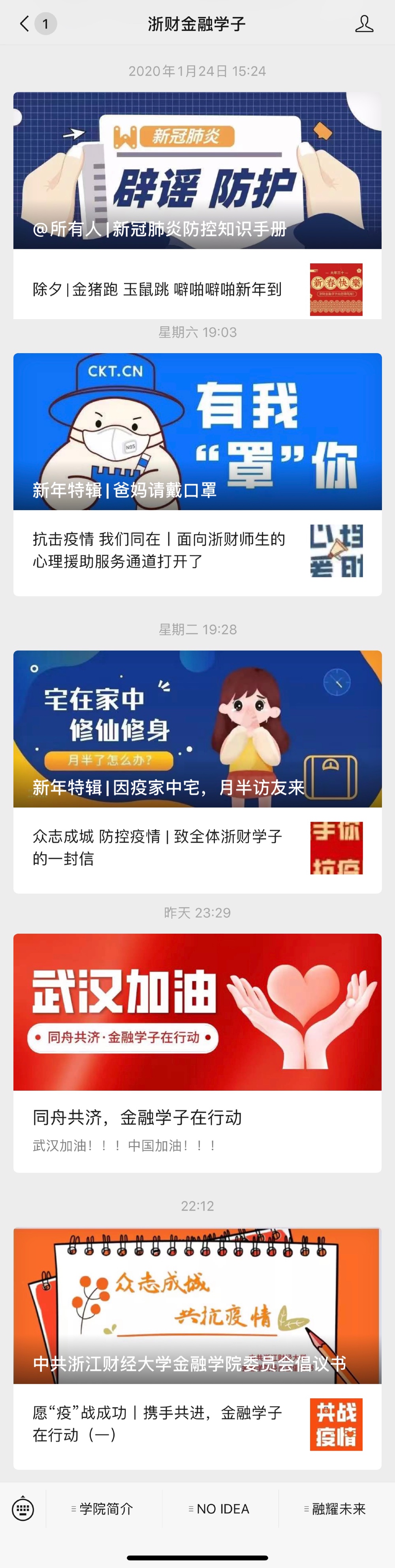 生命重于泰山,疫情就是命令,防控就是责任。自新型冠状病毒肺炎疫情发生以来,金融学院积极响党中央、国务院号召,坚决贯彻落实习近平总书记关于疫情防控工作的重要讲话及指示精神,切实把师生生命安全和身体健康放在第一位,把疫情防控工作作为当前最重要的工作来抓,迅速启动“五项行动”工作举措,全力以赴打好疫情防控阻击战。