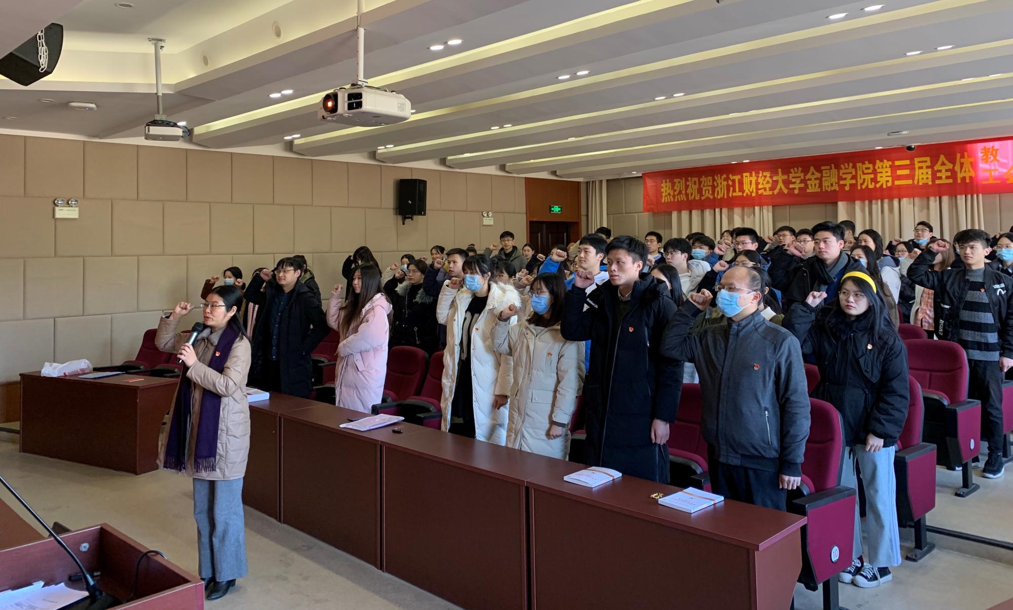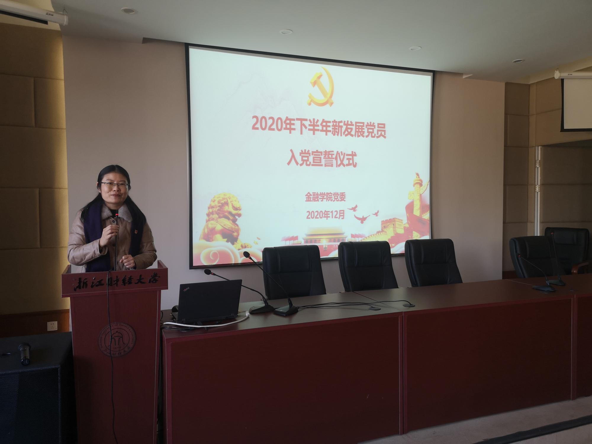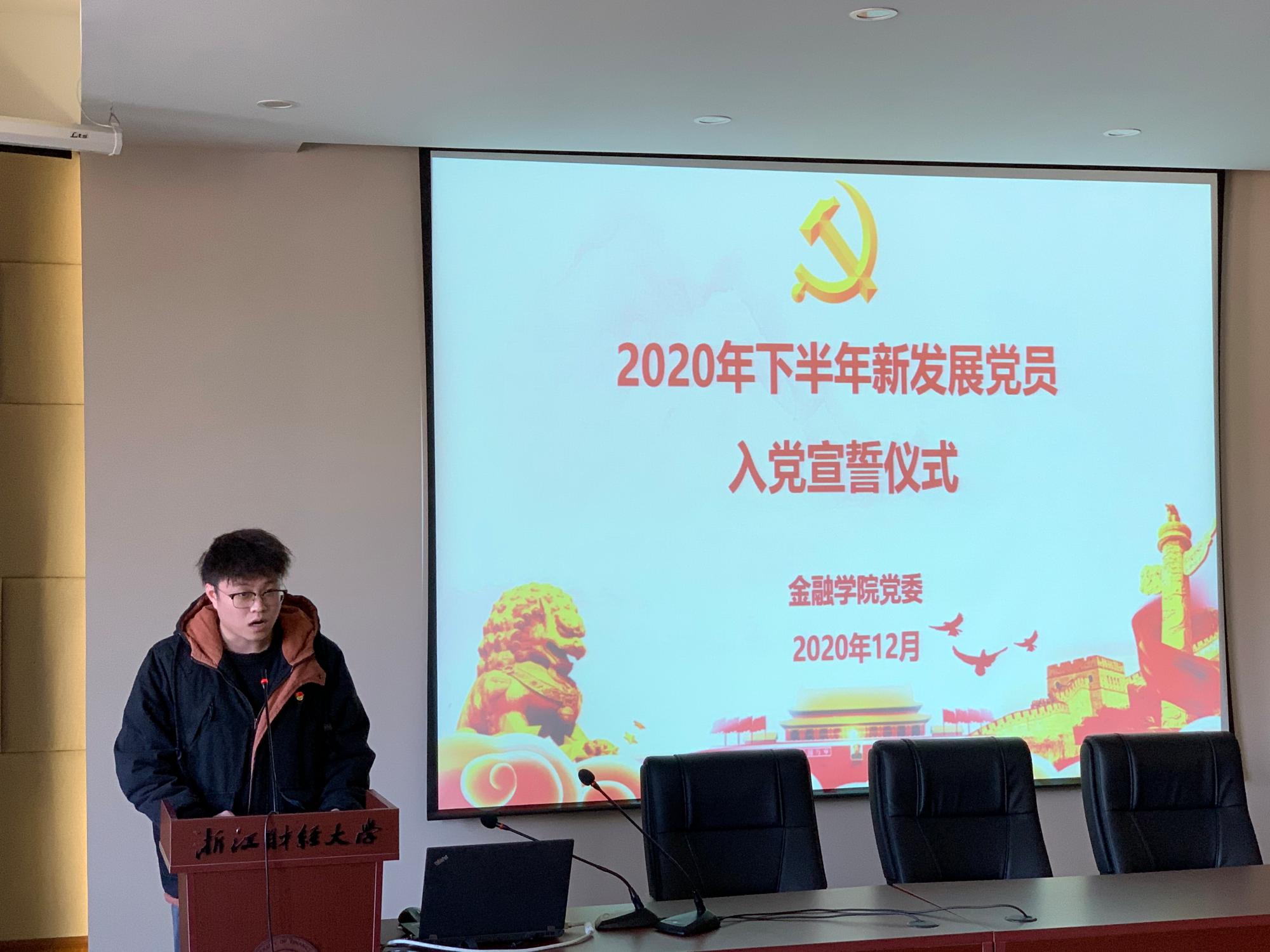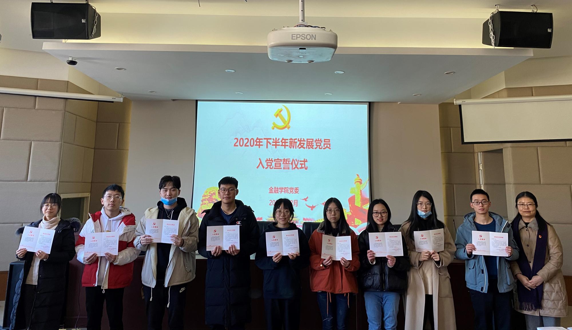 12月31日下午,金融学院在学院楼202报告厅举行2020年下半年新发展党员入党宣誓仪式。学院党委副书记谢敏、各学生党支部书记及支部委员出席仪式。此次新发展的53名学生党员和1名教师党员参加活动。活动由专职组织员翟丽媛主持。