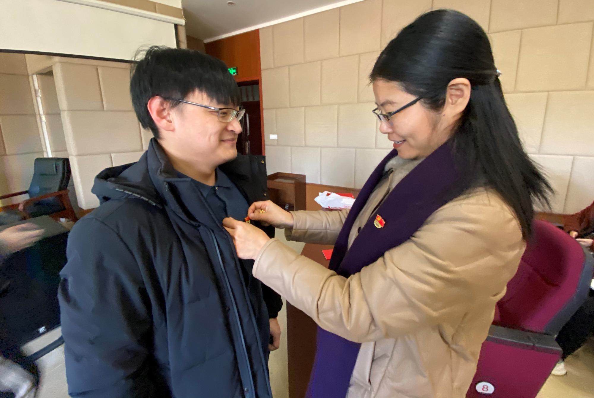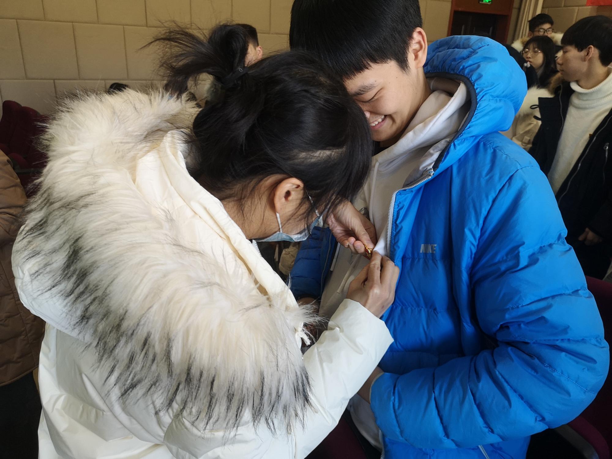 活动伊始,由翟丽媛宣读参加宣誓的预备党员名单,随后谢书记、党建指导老师、各支部书记及支委为新发展党员佩戴党徽并赠送《中国共产党章程》、发放《学习记录本》。