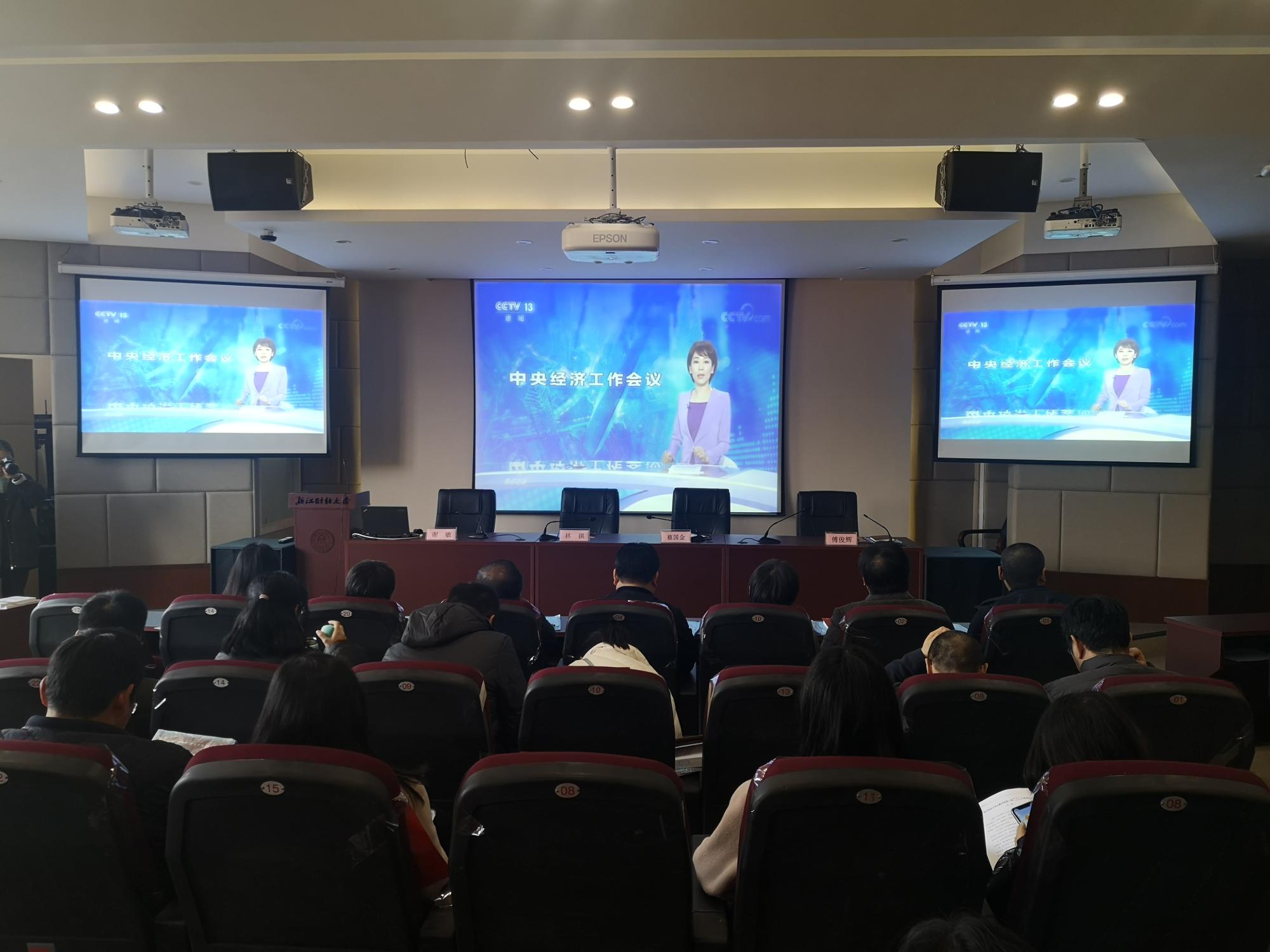 2020年12月24日,金融学院召开教职工大会进行政治理论集中学习,以观影的形式专题学习贯彻中央经济工作会议精神,全院教职工参加学习,学院党委书记蔡国金主持会议。