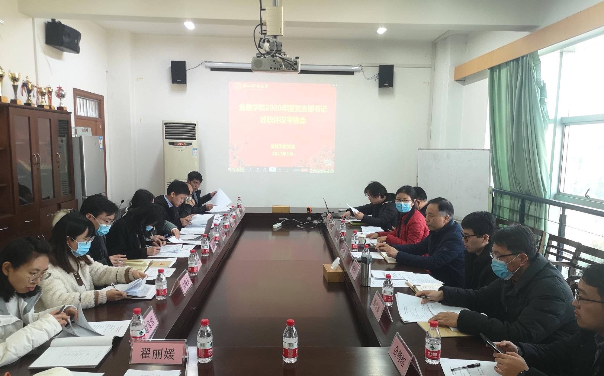 为进一步推动全面从严治党向基层延伸,充分发挥基层党支部的战斗堡垒作用,1月20日下午,金融学院党委在学院楼422会议室召开2020年度党支部书记述职评议会。学院党委书记蔡国金、副书记谢敏、学院党委委员及各党支部书记参加会议,会议由谢敏主持。