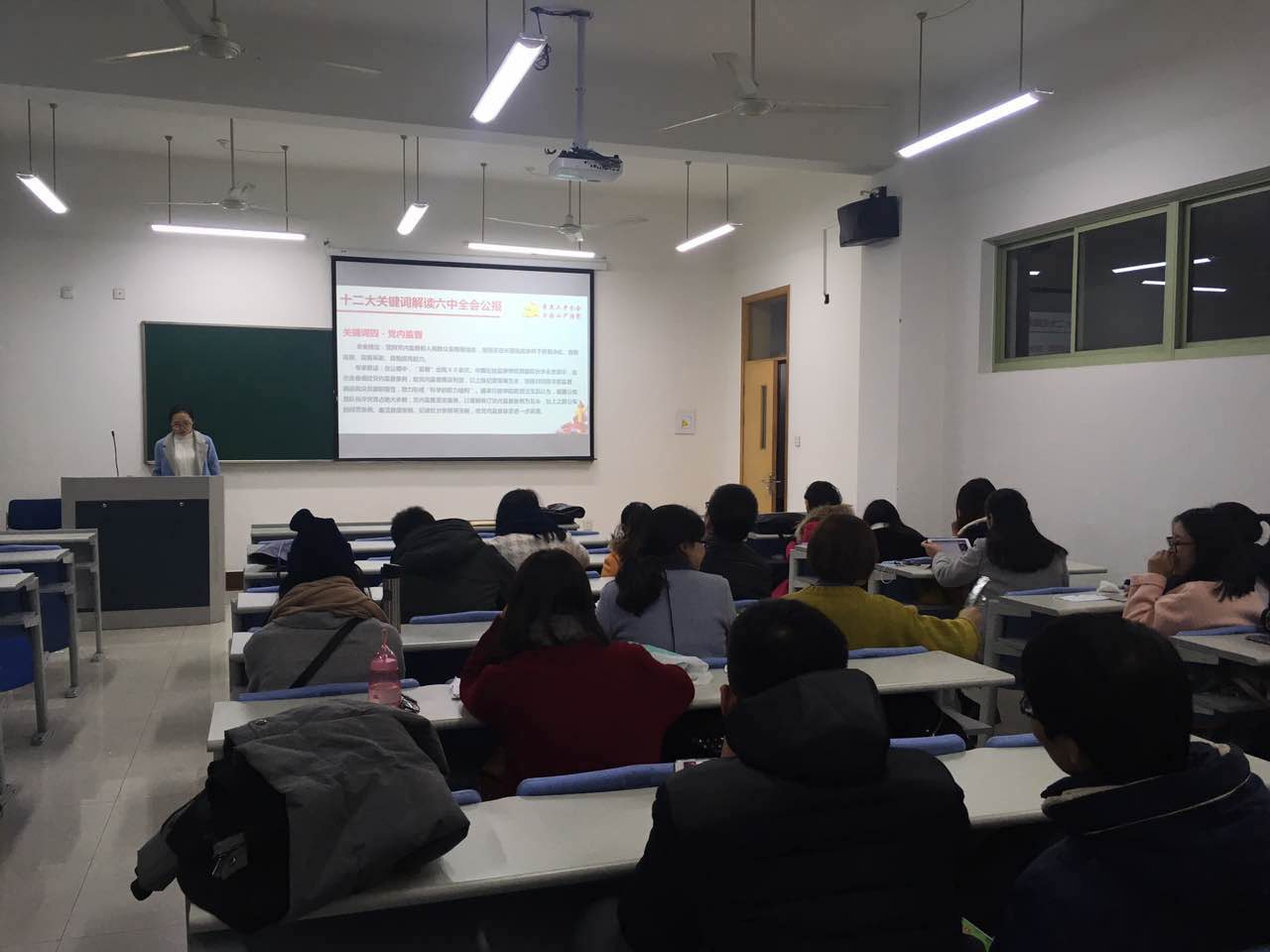 2016年11月23日晚上,金融学院研究生第一党支部换届大会及十八届六中全会学习生活会于学院楼109教室顺利开展,本次会议由支部负责人林智主持。
