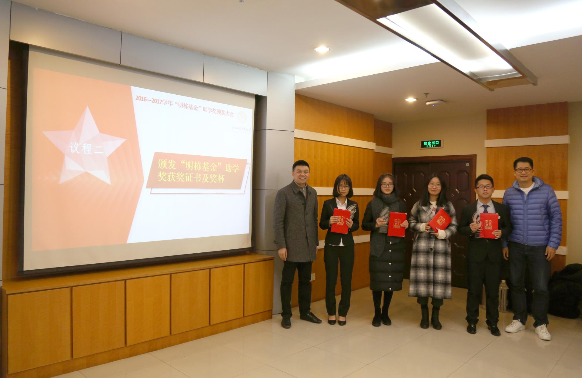 “明栋基金”由金融学院1986届校友王晓明、1998届校友楼栋自愿捐赠五百万元设立,分设筑梦奖和助学奖,旨在鼓励在校学生刻苦学习、积极进取、勇于创新,对品学兼优、家境贫寒的大学生给予相应资助。今年是第一次举行助学奖的颁奖仪式,意义重大。