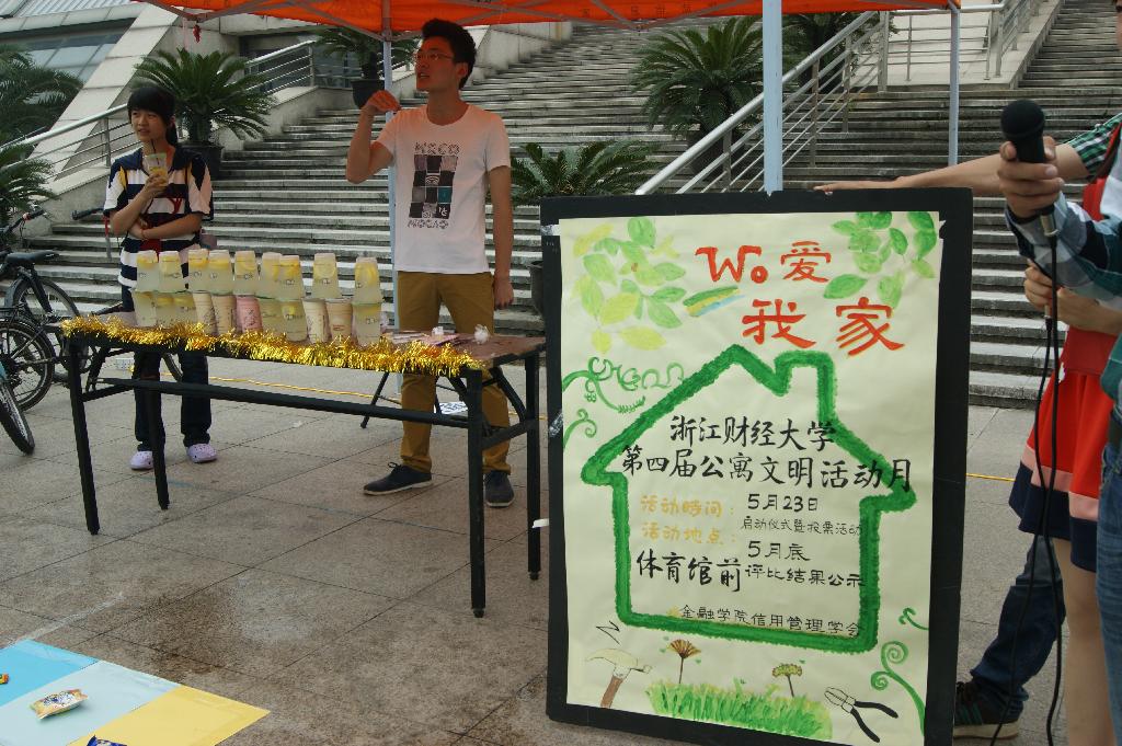 此次活动主要涉及餐厅、茶饮、理发、文具四个版块,通过同学们在预先设定好的商家一览表上投票和现场评价来评定该商家的星级,同时商家也可以通过现场表演来争取消费者的好感。活动中,理发师们卖力的舞蹈和技艺成为校园中一道独特的风景线,吸引许多同学驻足观看;而零食套用环节——以踢毽子到指定位置便可获得精美小礼品的方式,更是吸引众多同学争相参与。最后,此次活动在商家和同学们的共同参与中圆满结束。