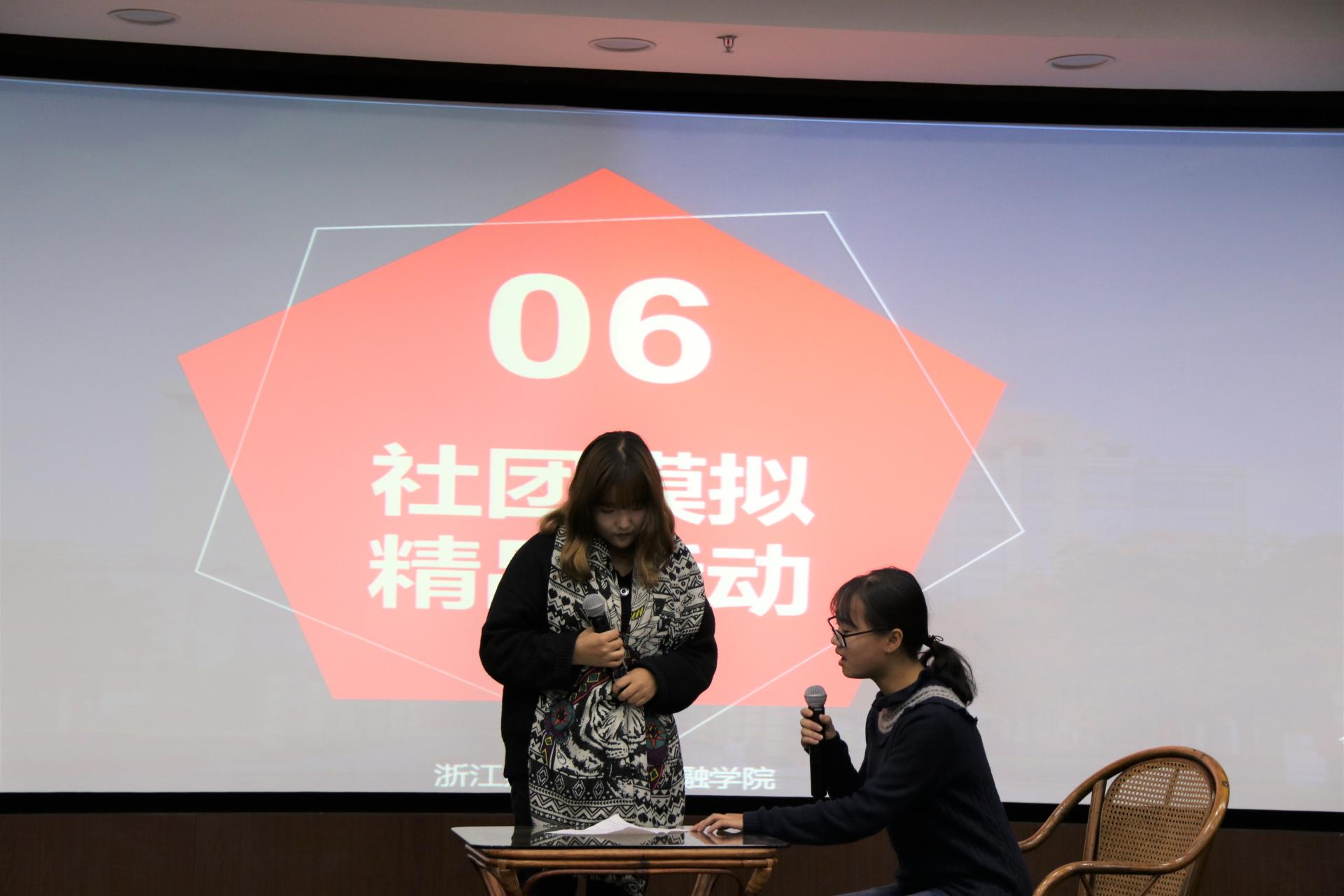 第三个环节是圆桌会议,钟立新老师,蒋超老师,国际金融学会会长马垠双,金融工程学会成员王欣杰以及主持人上台就座,他们就如何学以致用、推陈出新,如何营造学会的学术氛围等问题作了解答,气氛活跃,令到场的同学收获颇多。最后便是社团模拟精品活动,来自保险学会的成员们上台模拟了学会的精品活动——保险案例分析,让同学们对购买保险有了更深刻的认识。