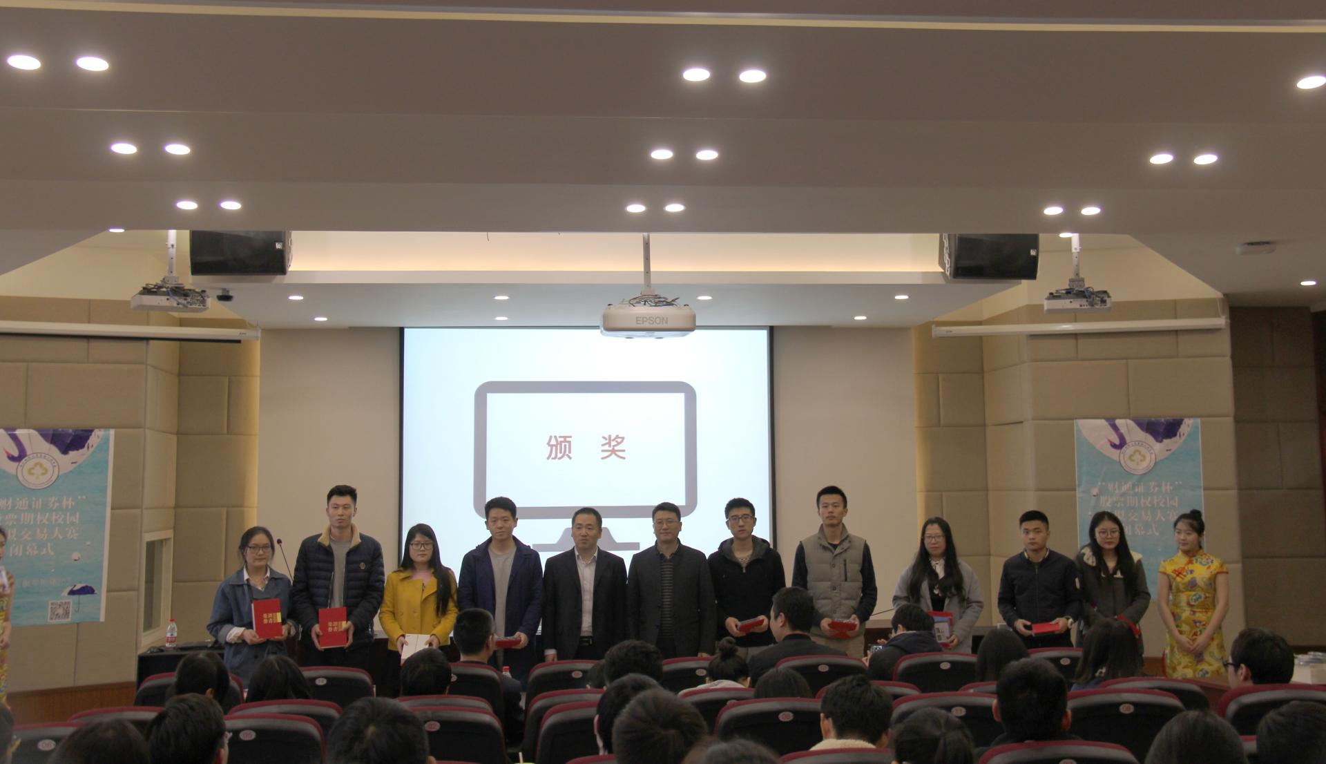 12月20日下午1:00,由我院金融工程学会承办的首届“财通证券杯”股票期权校园模拟交易大赛闭幕式暨颁奖典礼在学院楼202报告厅隆重举行。本次竞赛得到了浙江省财通证券股份有限公司的大力支持,在历时1个多月的时间里有来自全校500名学生参与了本次竞赛。