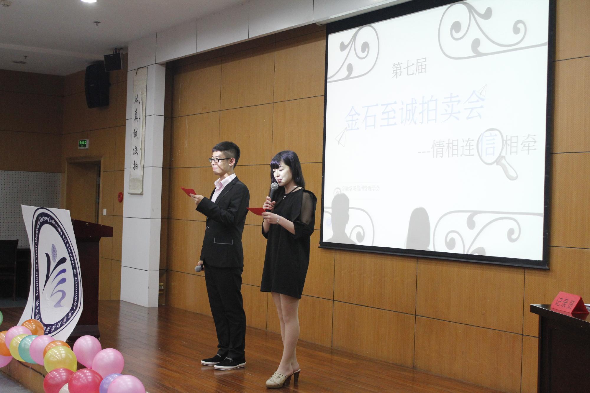 5 月11日 晚,信用管理学会于学术中心二号报告厅举办了第七届金石拍卖会。金石拍卖会是金融学院GPS学习型公寓建设的一个精品活动。金石拍卖会秉着诚信的理念立足于慈善,将拍卖商品所得的费用全部捐赠,为那些需要帮助的人提供爱心支持。本次到场的嘉宾有金融学院政治辅导员吴轶韵老师、金融学院学生会主席汤洁以及金融学会会长张倬男、前会长毛琼以及保险学会代表李昊。我院各届学生也踊跃参加了此次拍卖。