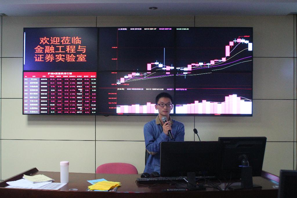 下午1点30分,金融学会本学年第二次学术讲座——股市沙龙在金融与证券实验室E310举行。本次讲座由金融学会学术委员会委员长胡杰飞担任主讲嘉宾,介绍证券知识并与大家一起分享他的投资心得。