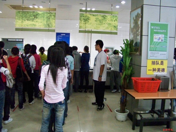 在金融学院信用管理学会成立之际,信用管理学会在桃李苑文华餐厅展开了名为“诚信排队,礼让为先”的抽样调查活动。
