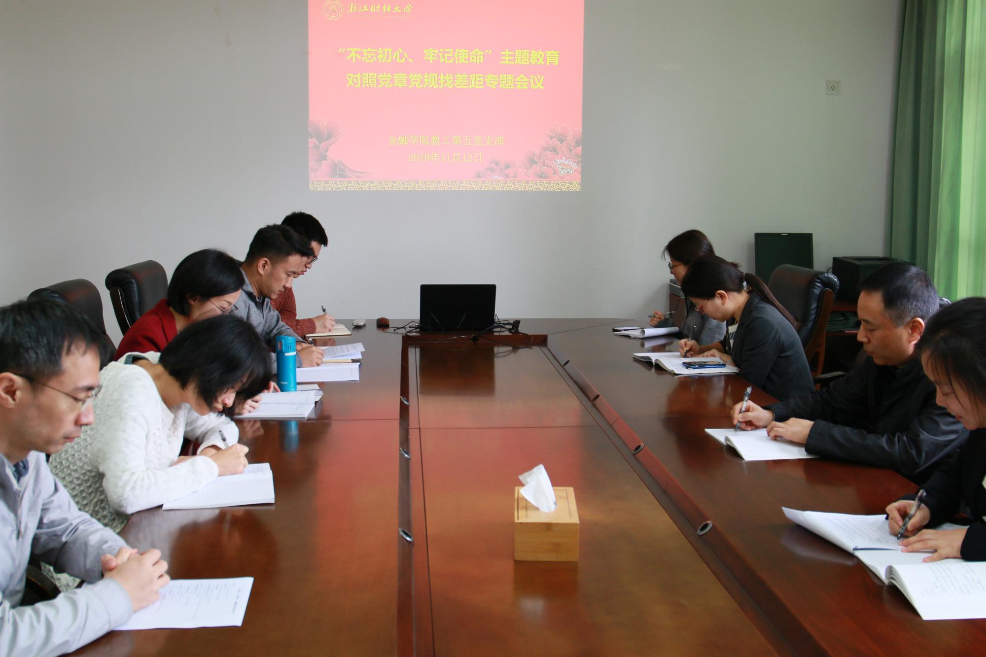 11月12日,金融学院教工第五党支部召开对照党章党规找差距专题会议,支部全体党员参加会议,会议由支部书记井冬梅主持。