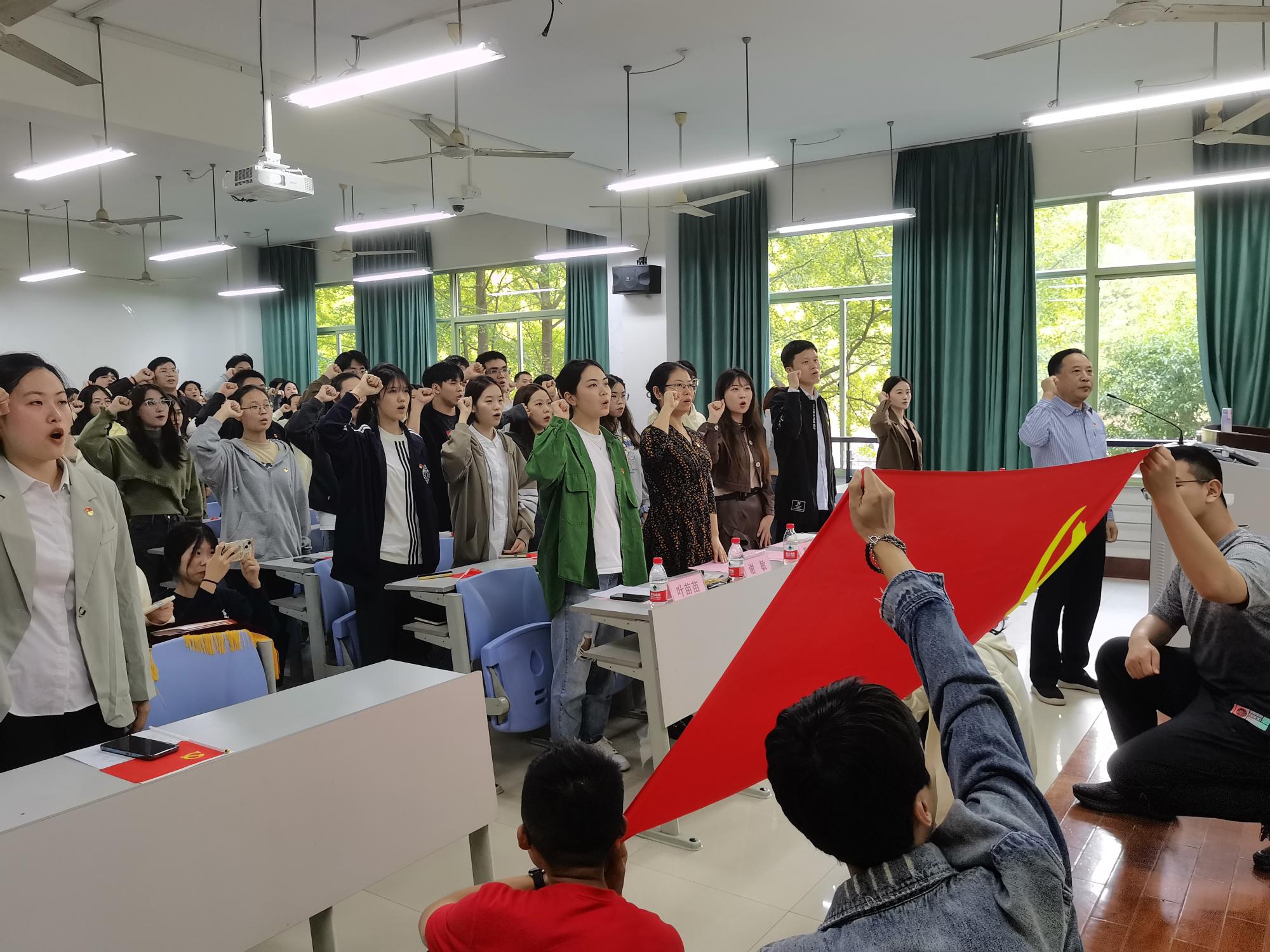 10月10日下午,金融学院党委在学院楼104教室举行2023年上半年新发展党员入党宣誓仪式。学院党委书记蔡国金、党委副书记谢敏、各学生党支部书记、党建指导老师、各支部支委、老党员代表及全体新发展党员出席了本次仪式。仪式由专职组织员翟丽媛主持。 ...