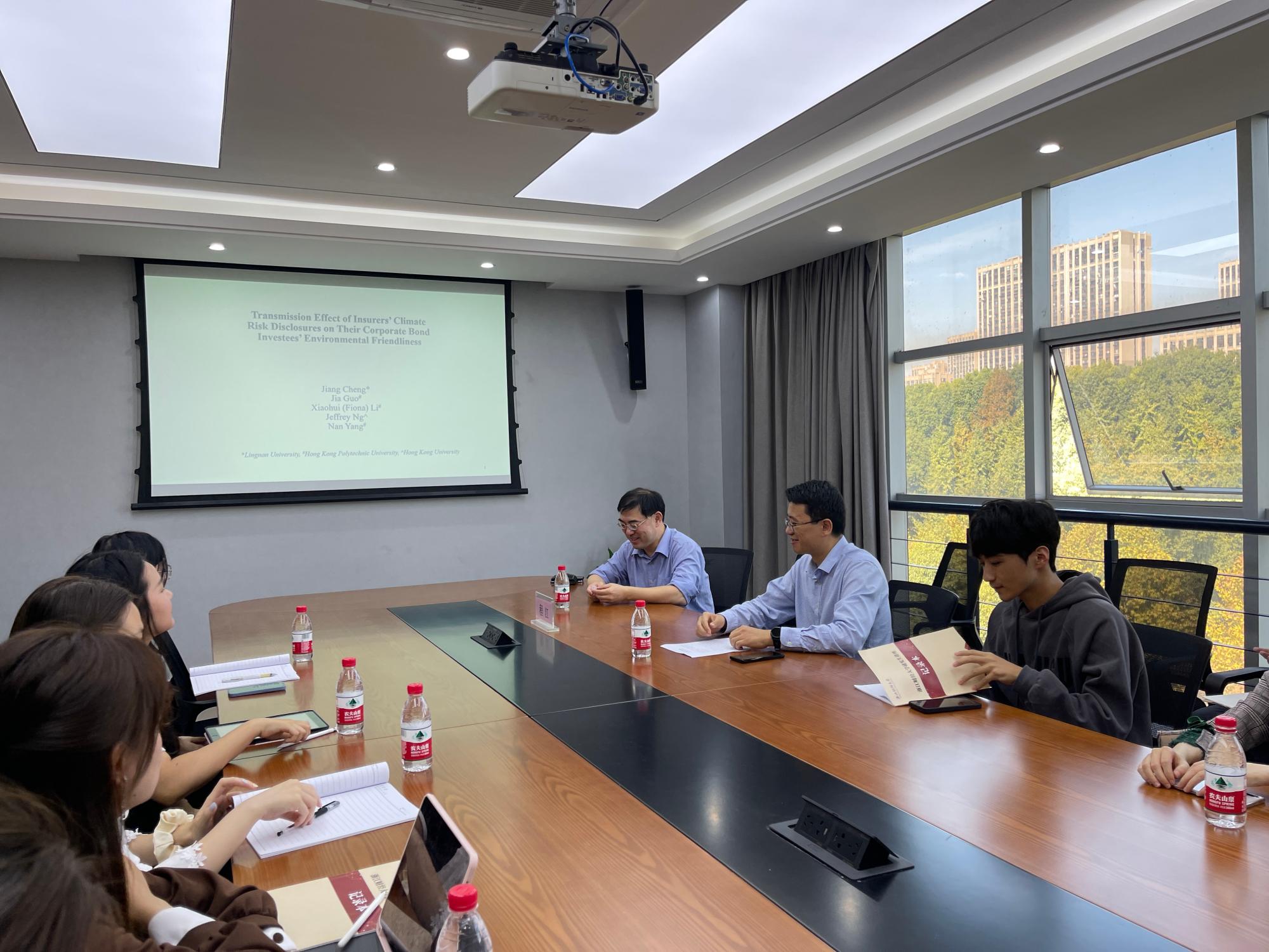 为促进金融学院学术交流,2023年11月3日,香港岭南大学程江副教授来金融学院进行学术交流,本次会议由王聪聪院长主持。在本次讲座中,程江教授向大家展示了自己最新的研究成果,保险公司气候风险披露对其投资企业环境友好性(碳排放)的影响及作用机制。首...