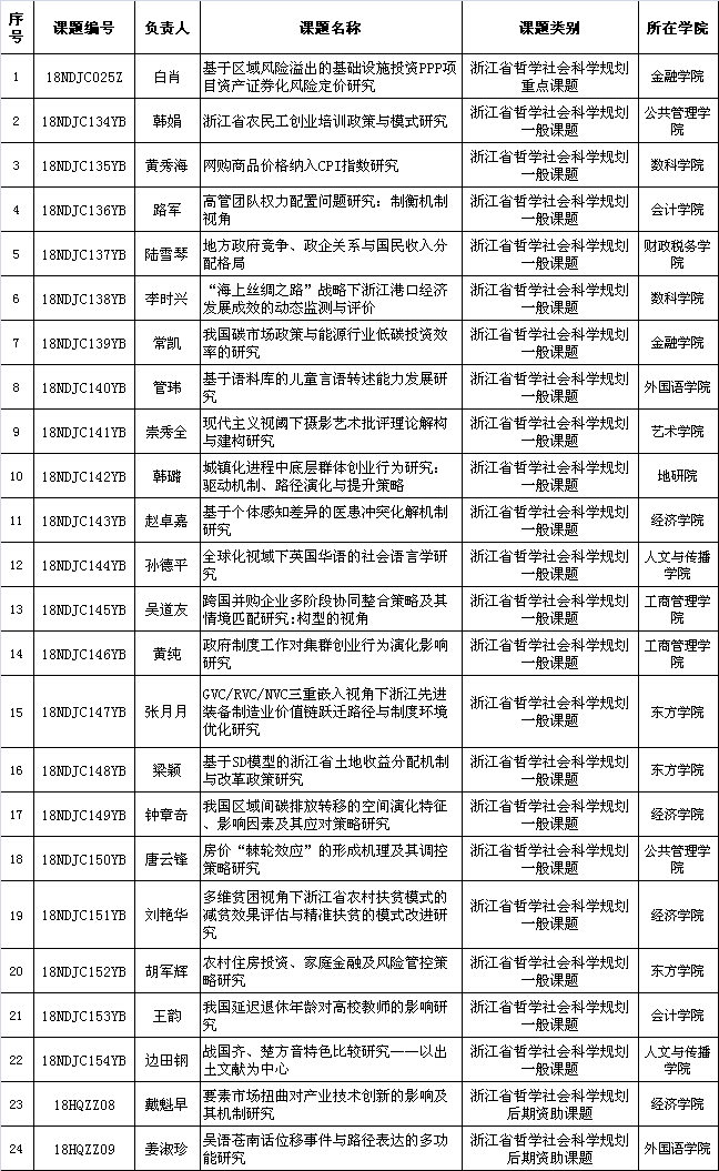 近日,经专家评审,省社科联党组研究,省哲学社会科学发展规划领导小组审批,2018年度省哲学社会科学规划课题评审结果正式公布,我校获准立项24项,立项数居全省第2位。