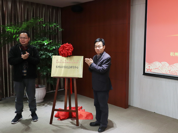 校党委副书记卢新波和沈金华共同为杭州市社情民意研究中心揭牌,并颁发了聘书。